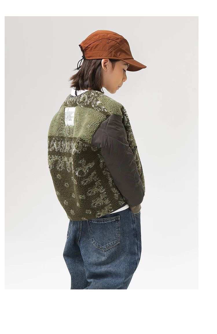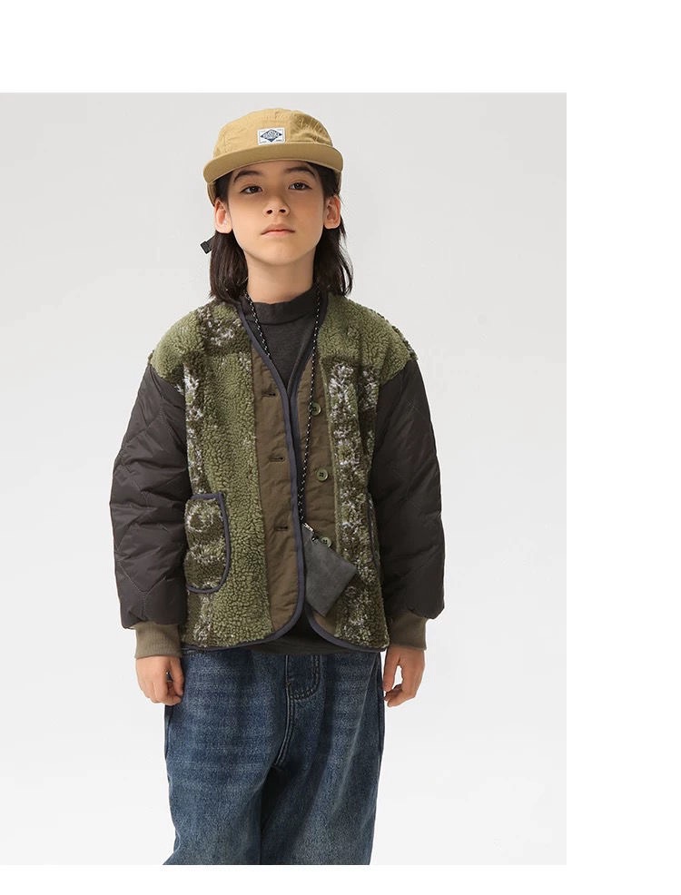 厚實拼接棉料+羊羔毛內裡 保暖、挺版又有層次感