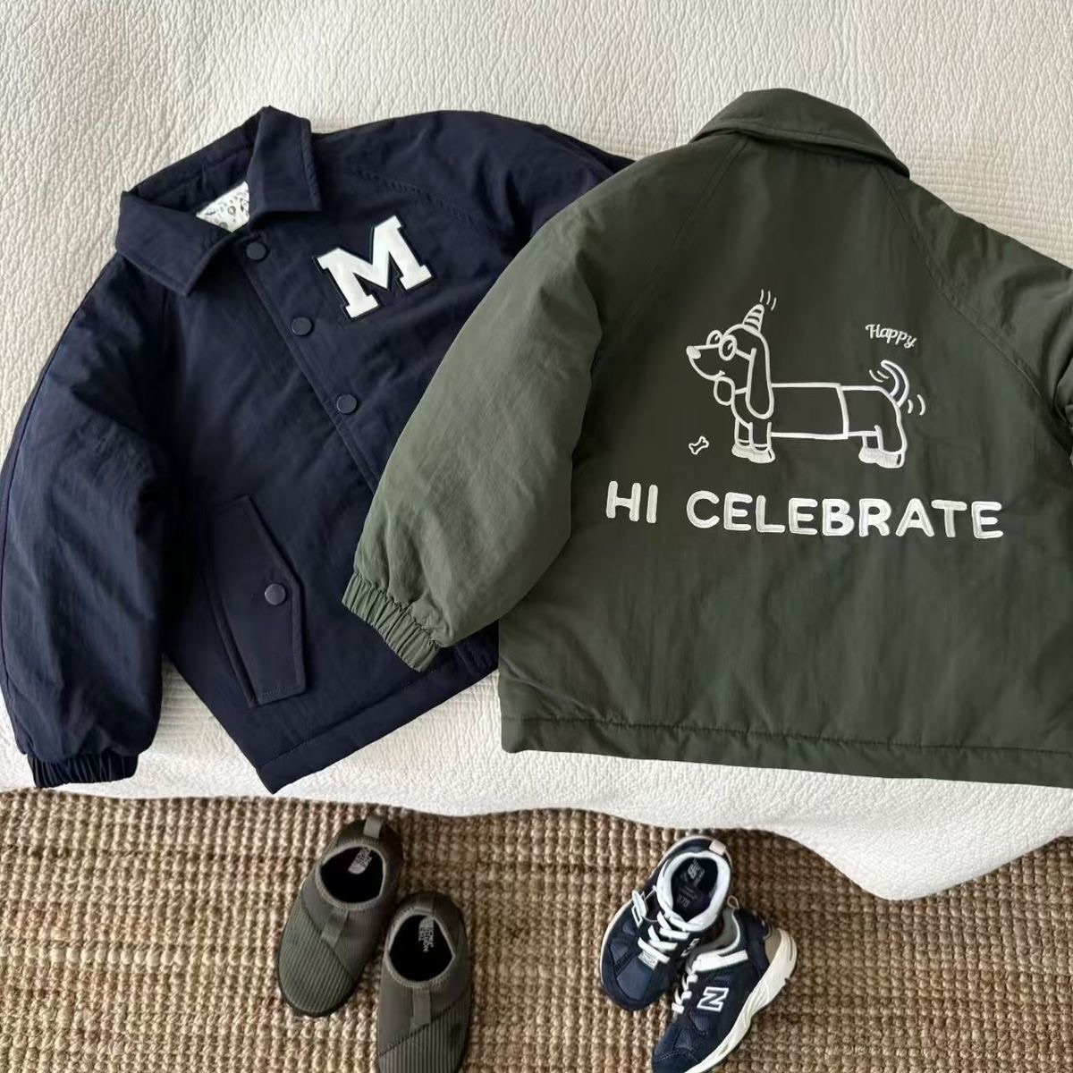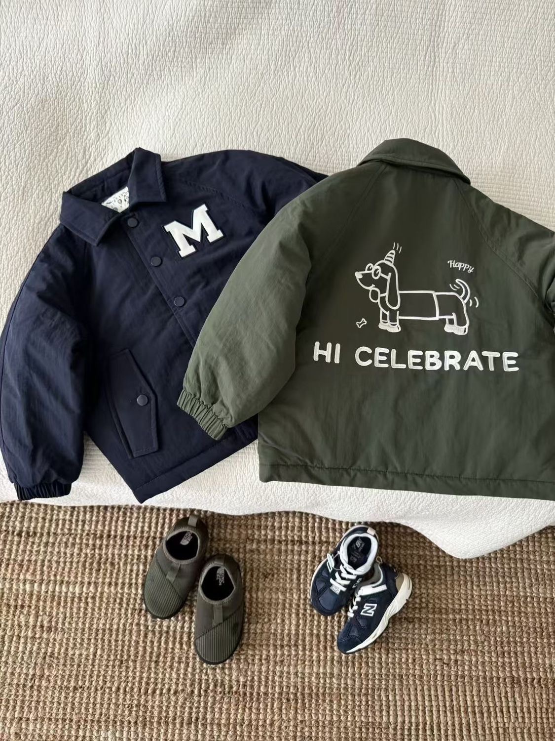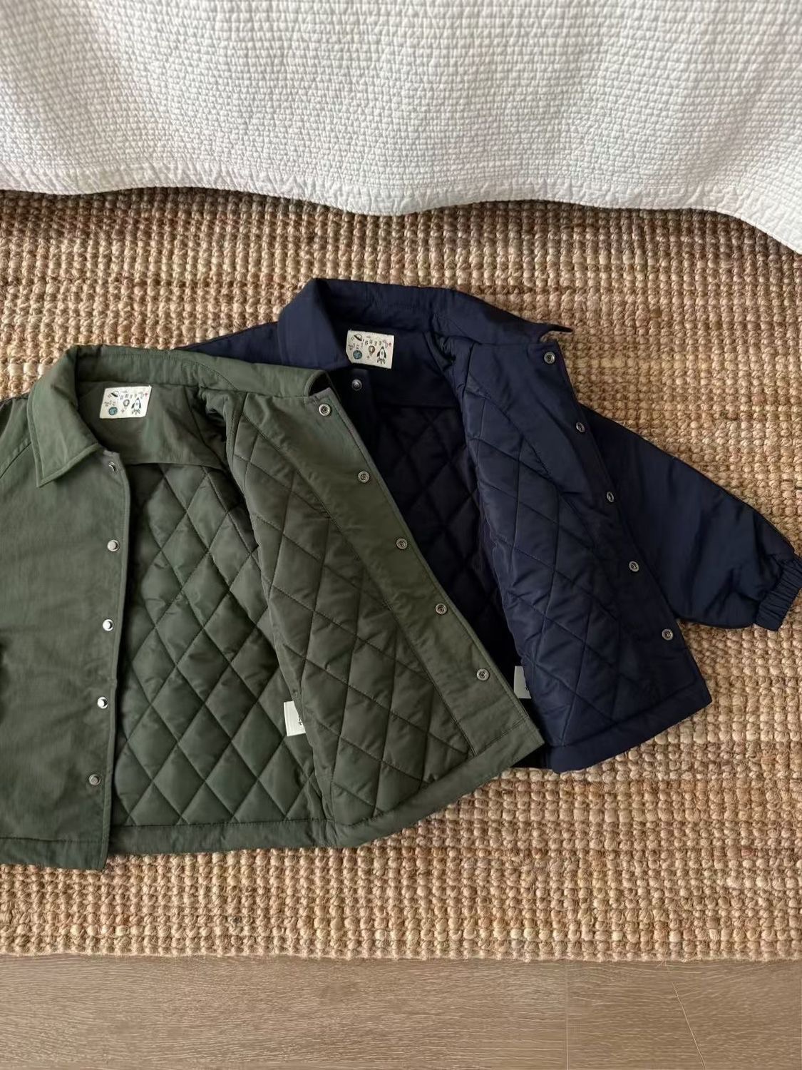 軍綠、藏青兩色都好百搭,內層鋪棉保暖又輕盈 男寶女寶都能穿,配牛仔褲或棉褲都超帥 ✨