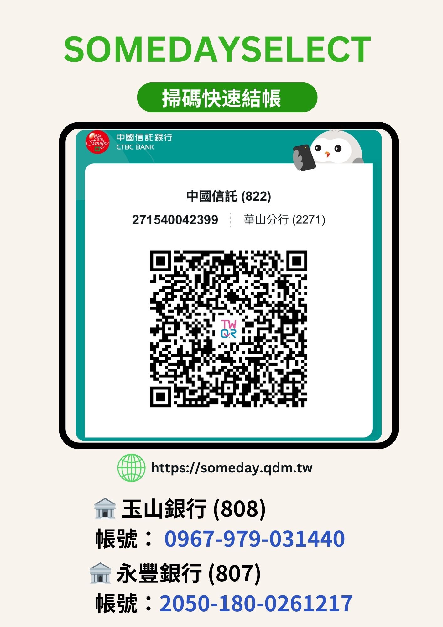 *匯款完成,請記得將資料回傳或填寫線上匯款通知,讓我們能儘速為您把這份美好打包寄出喔