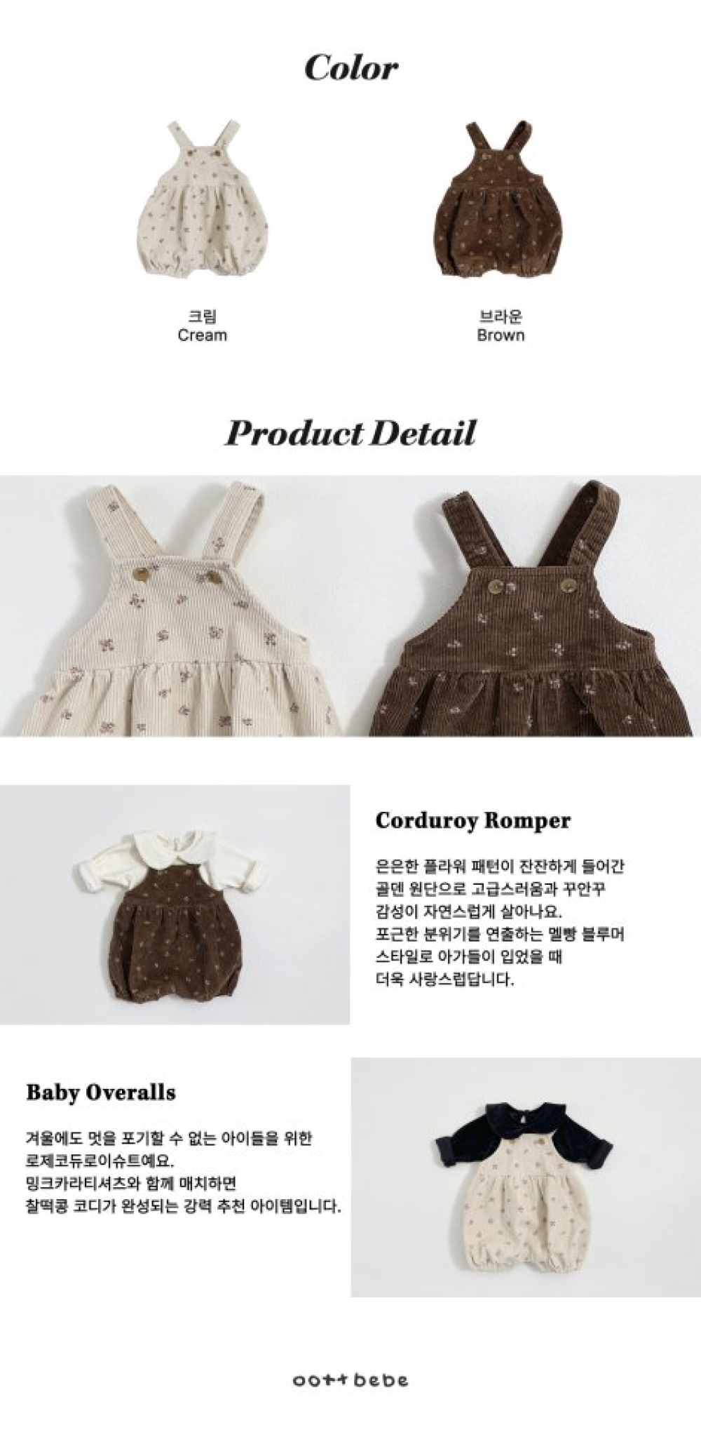 柔軟溫暖的 燈芯絨材質(Corduroy),搭配細緻小碎花,滿滿韓系溫柔感。