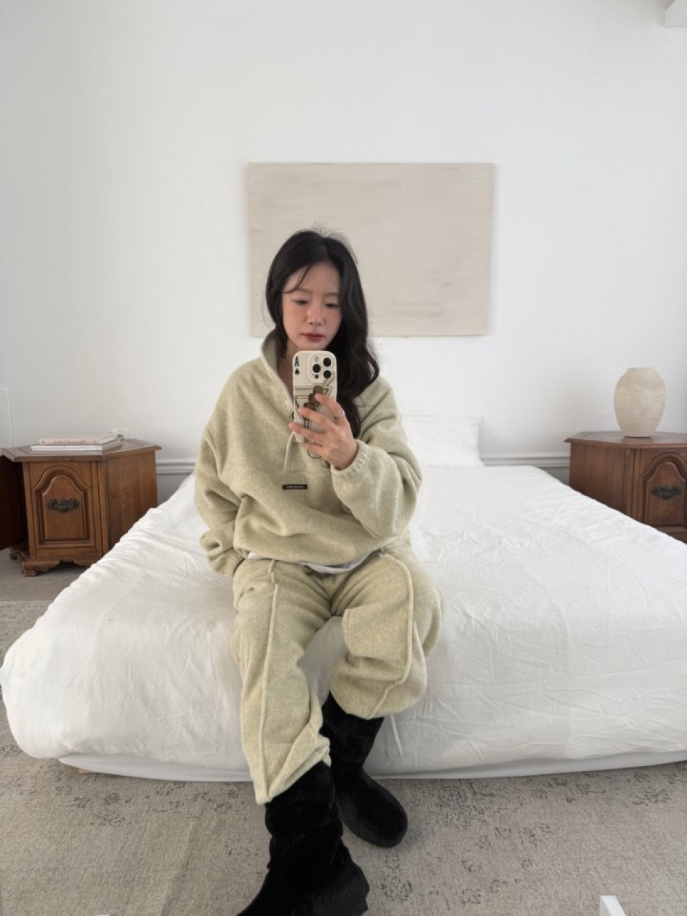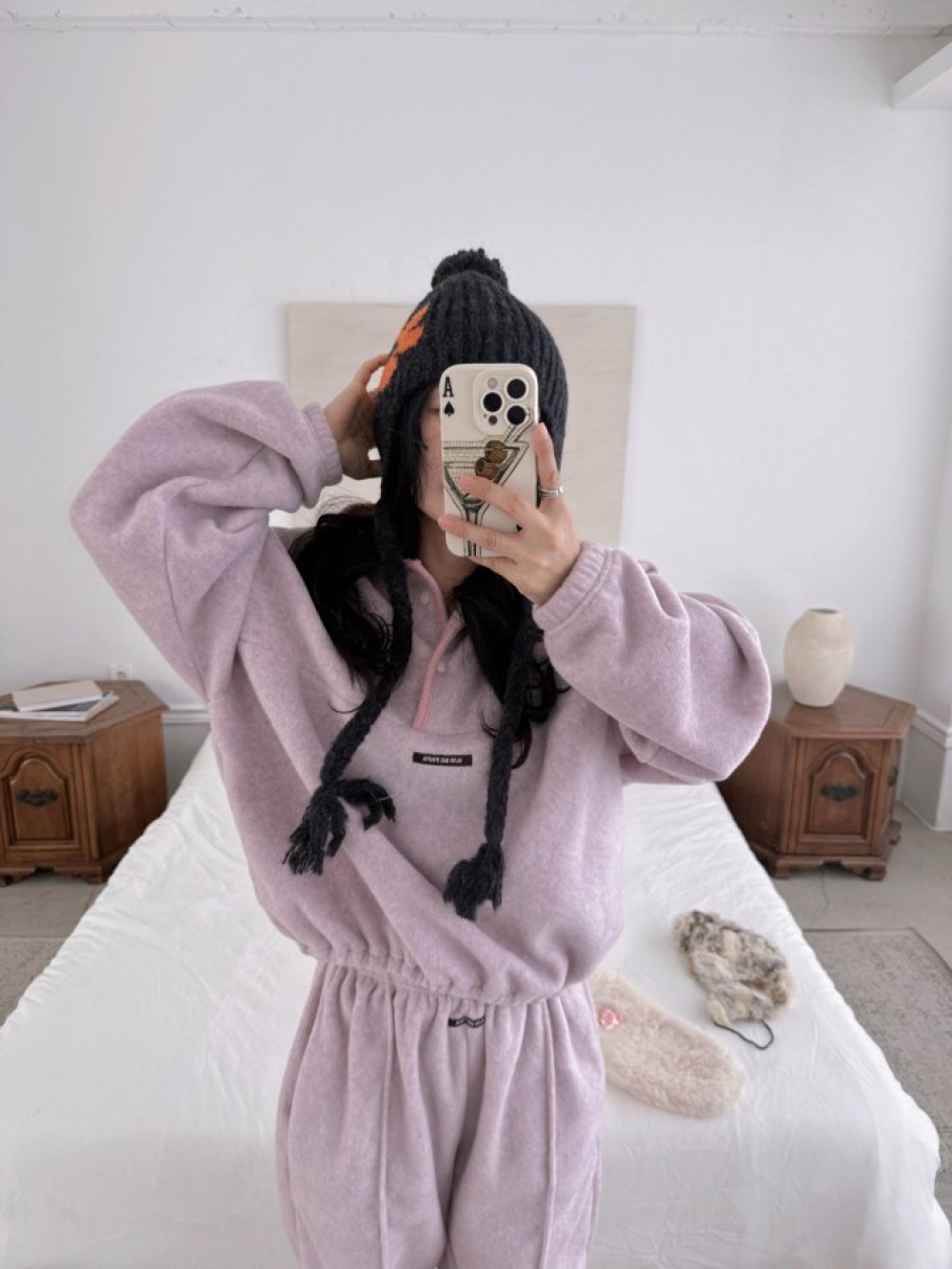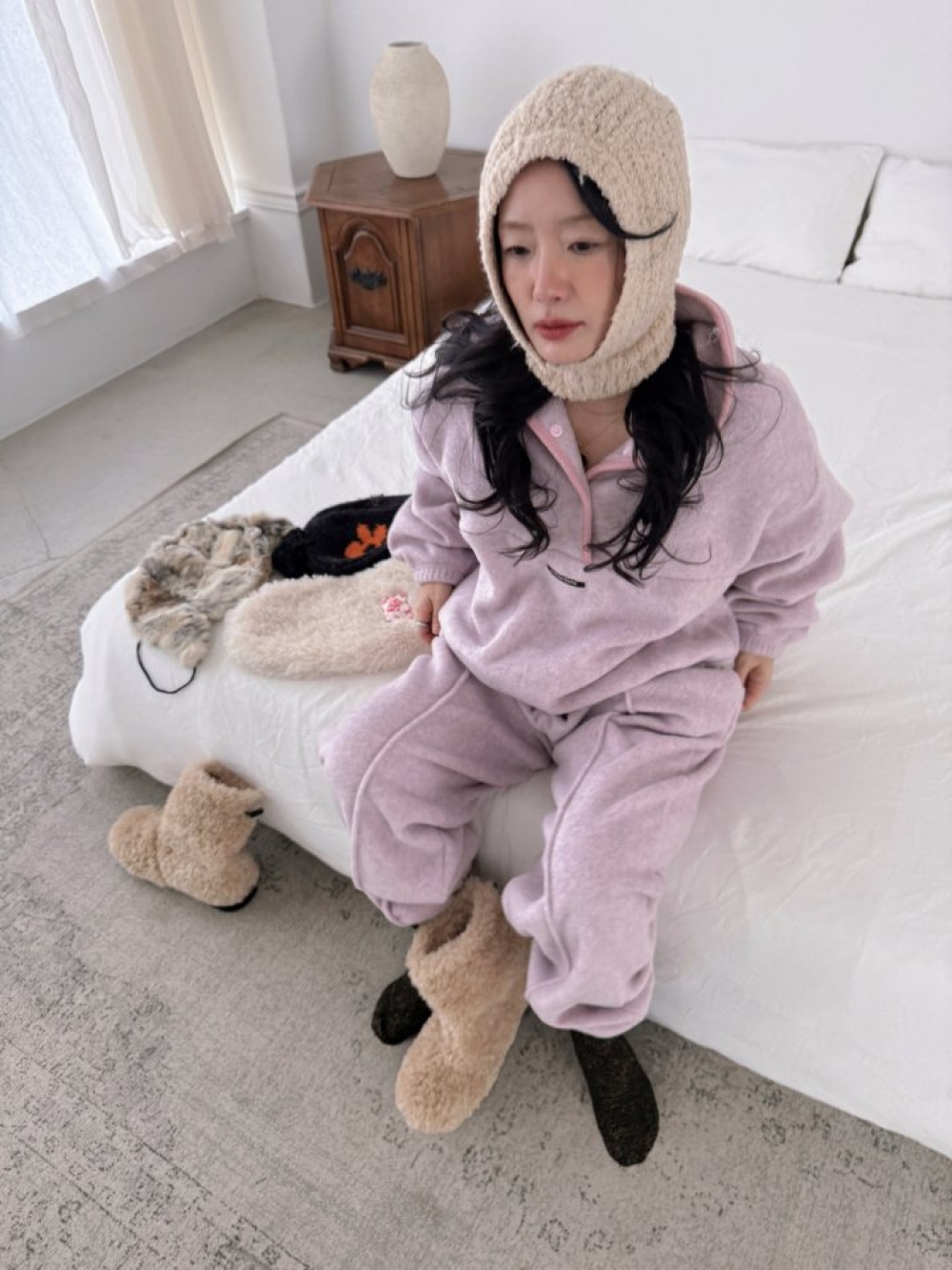 採用高質感羊羔絨材質,親膚保暖但不厚重,套上那刻直接被軟萌氛圍包圍。