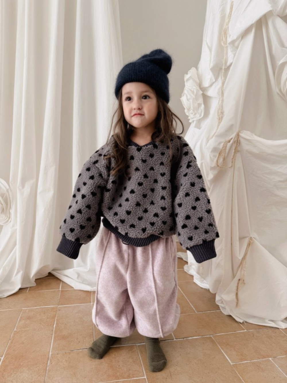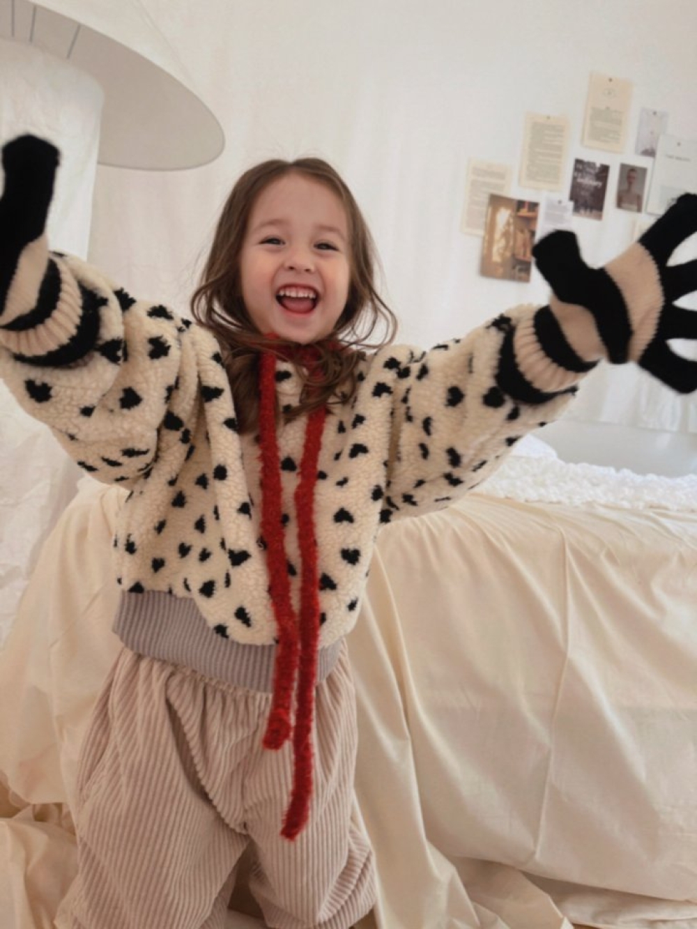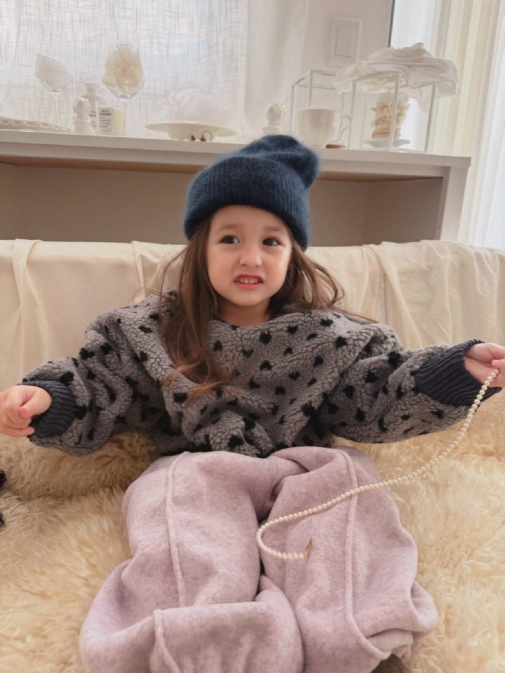 這款是親子款愛心點點刷毛上衣,
