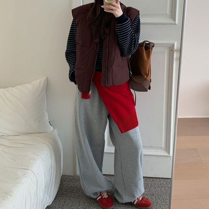 直筒剪裁搭配鬆緊腰頭,日常穿著方便。