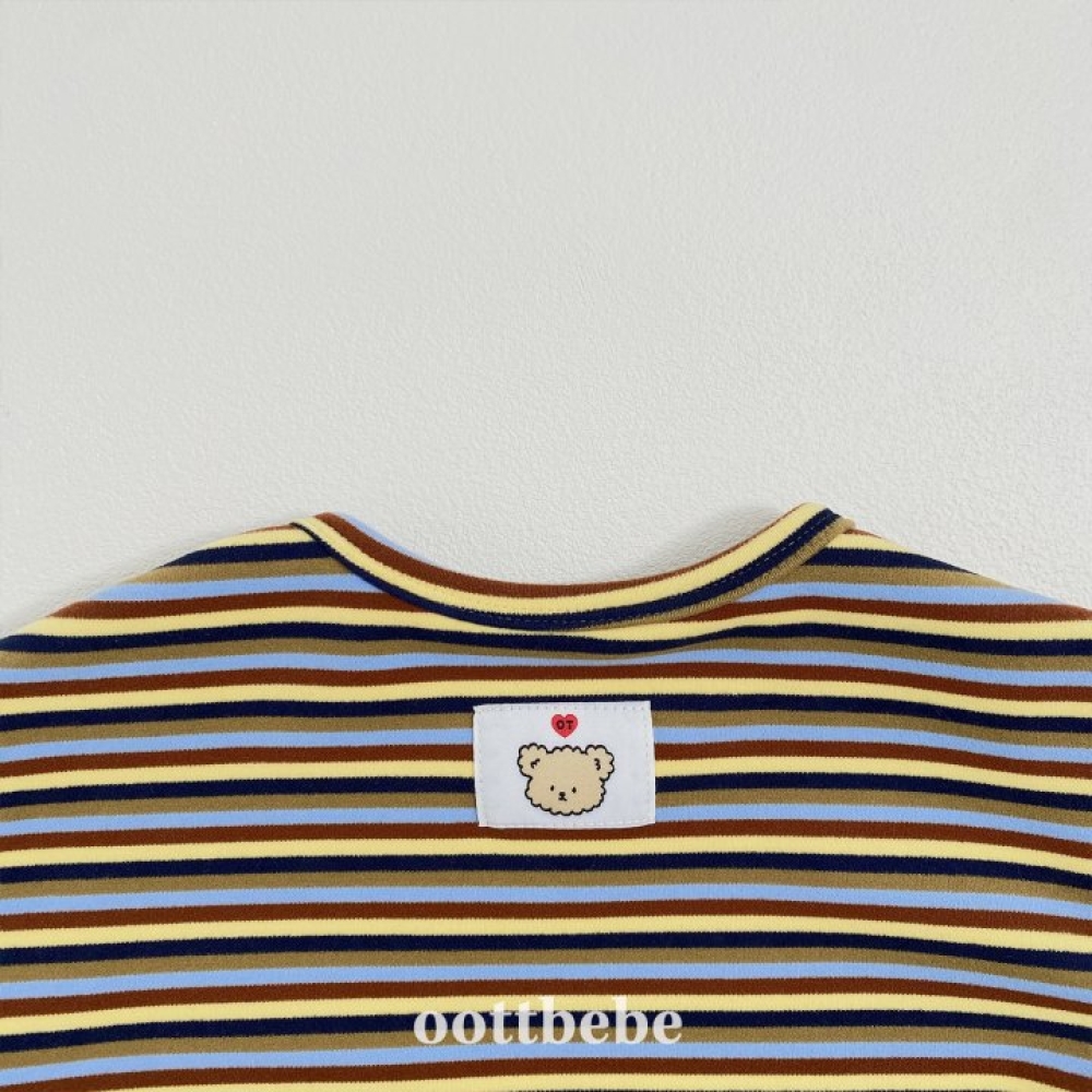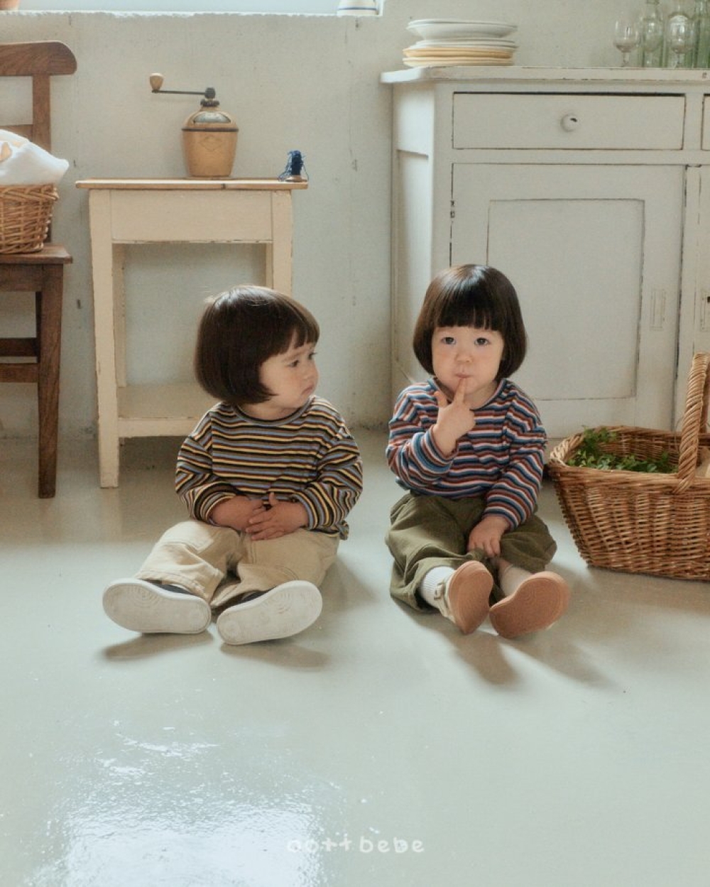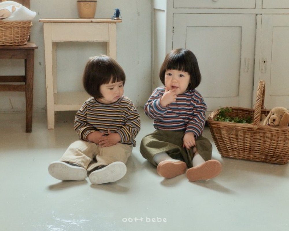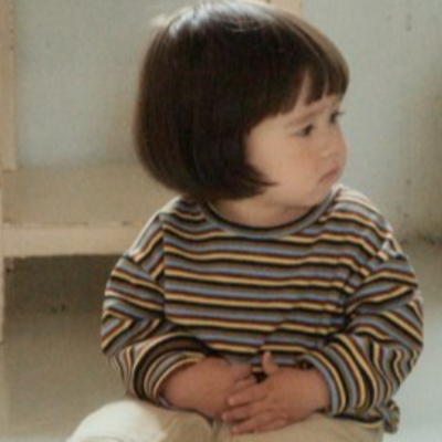 oott bebe 很會做這種—— 顏色有層次、但完全不刺眼的條紋。 單穿就有造型感,搭什麼褲子都不會出錯