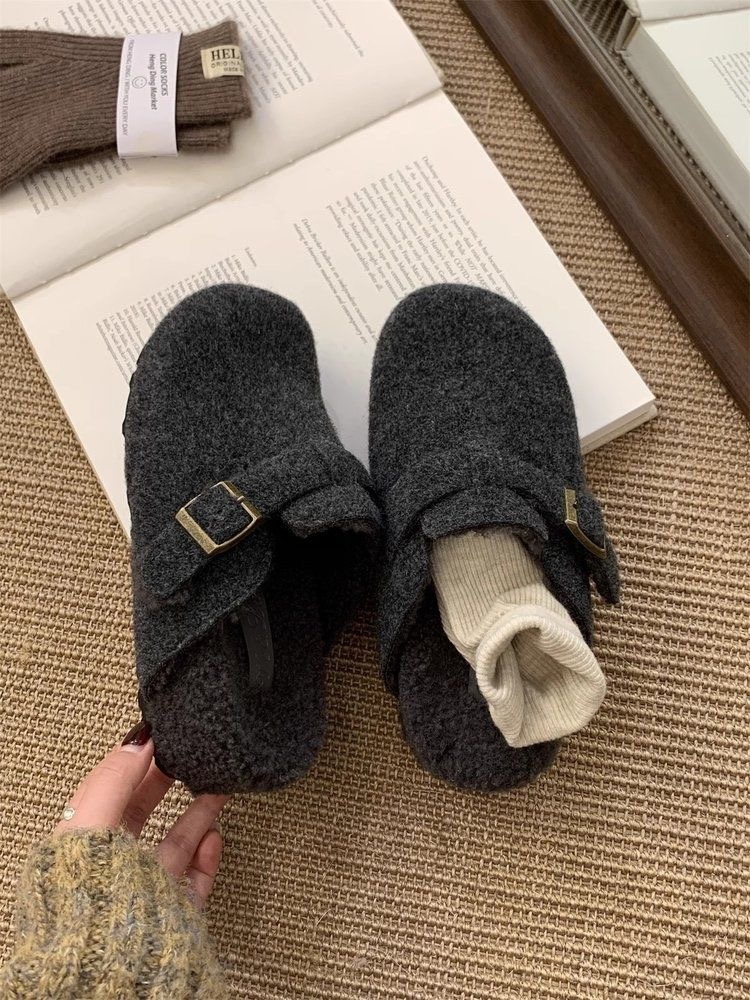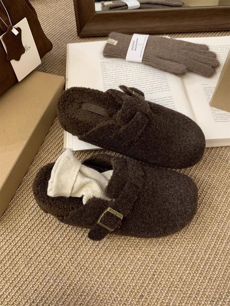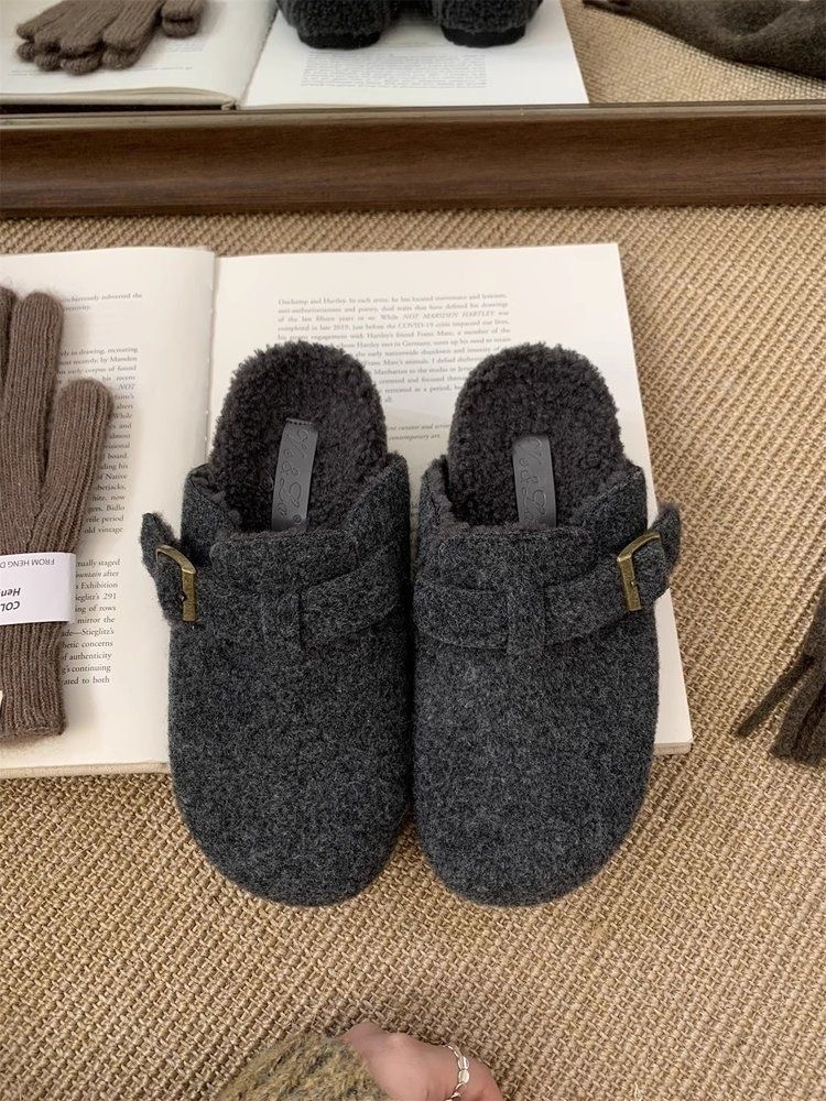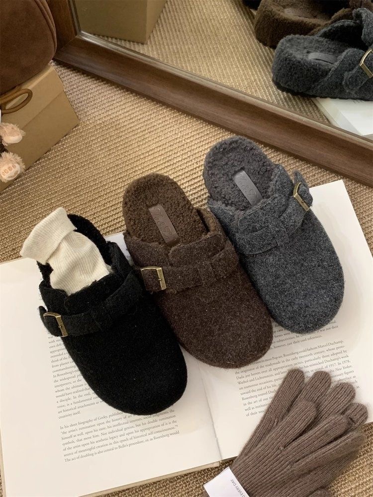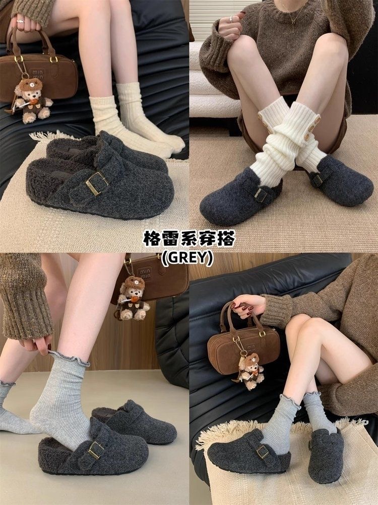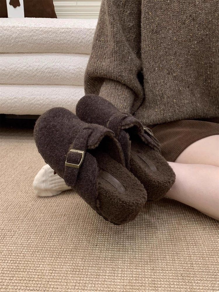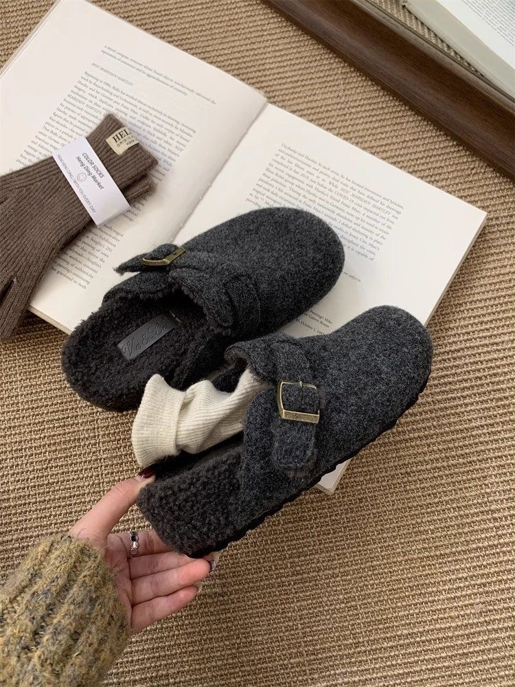 - 毛呢鞋面+包頭設計,冬天穿更暖