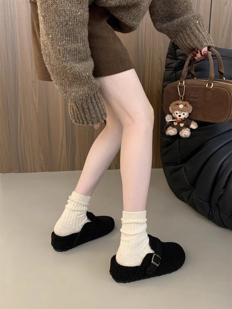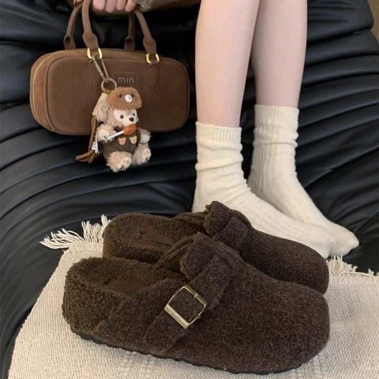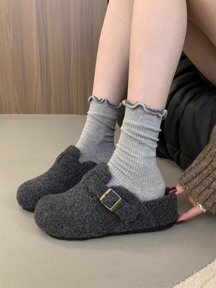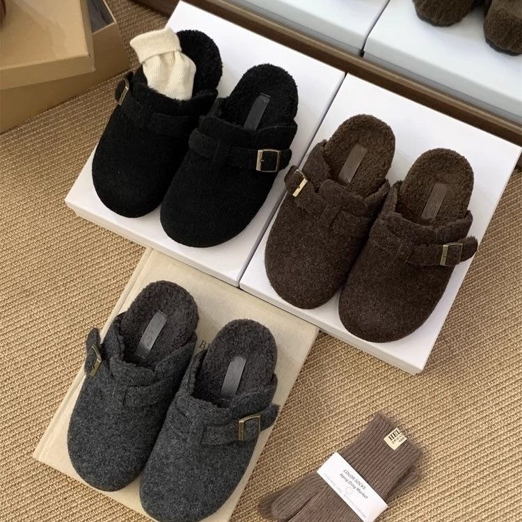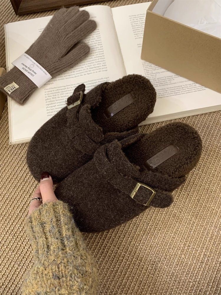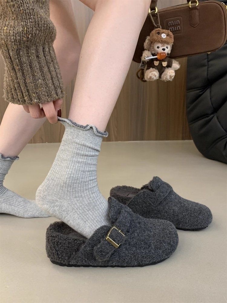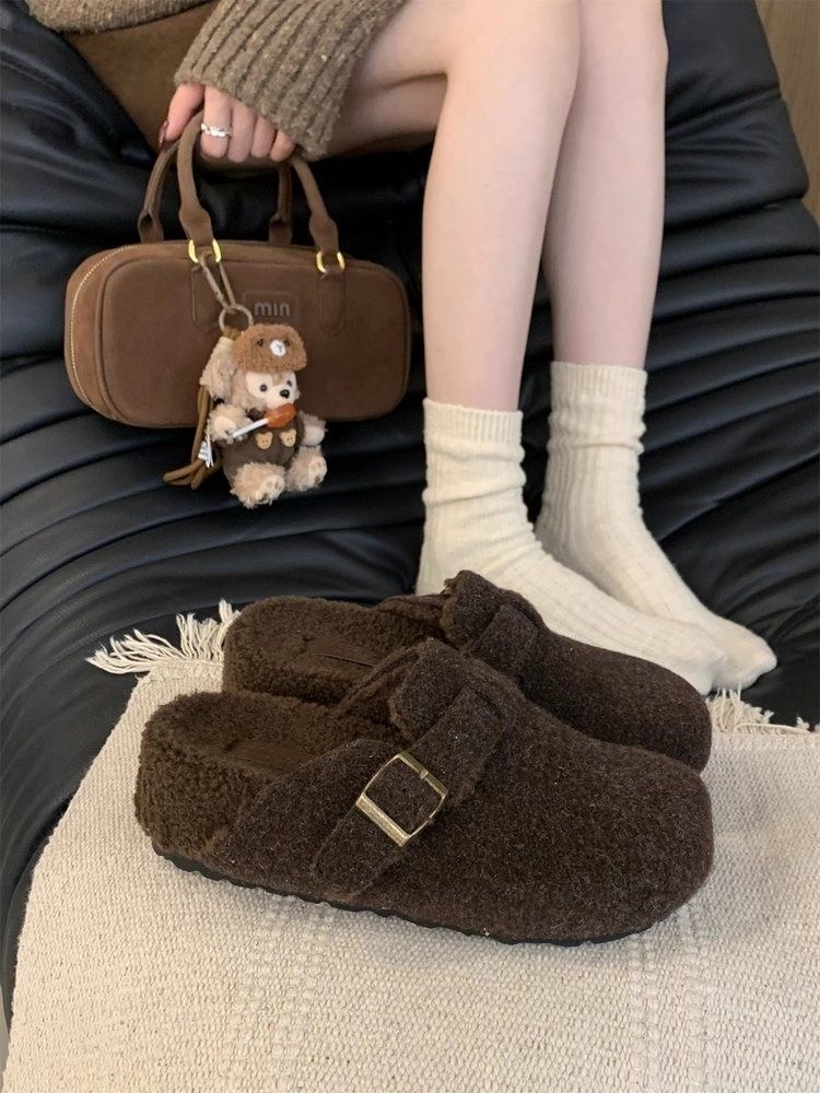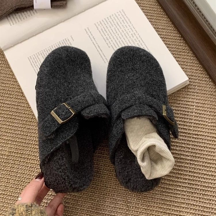 - 毛呢鞋面+包頭設計,冬天穿更暖