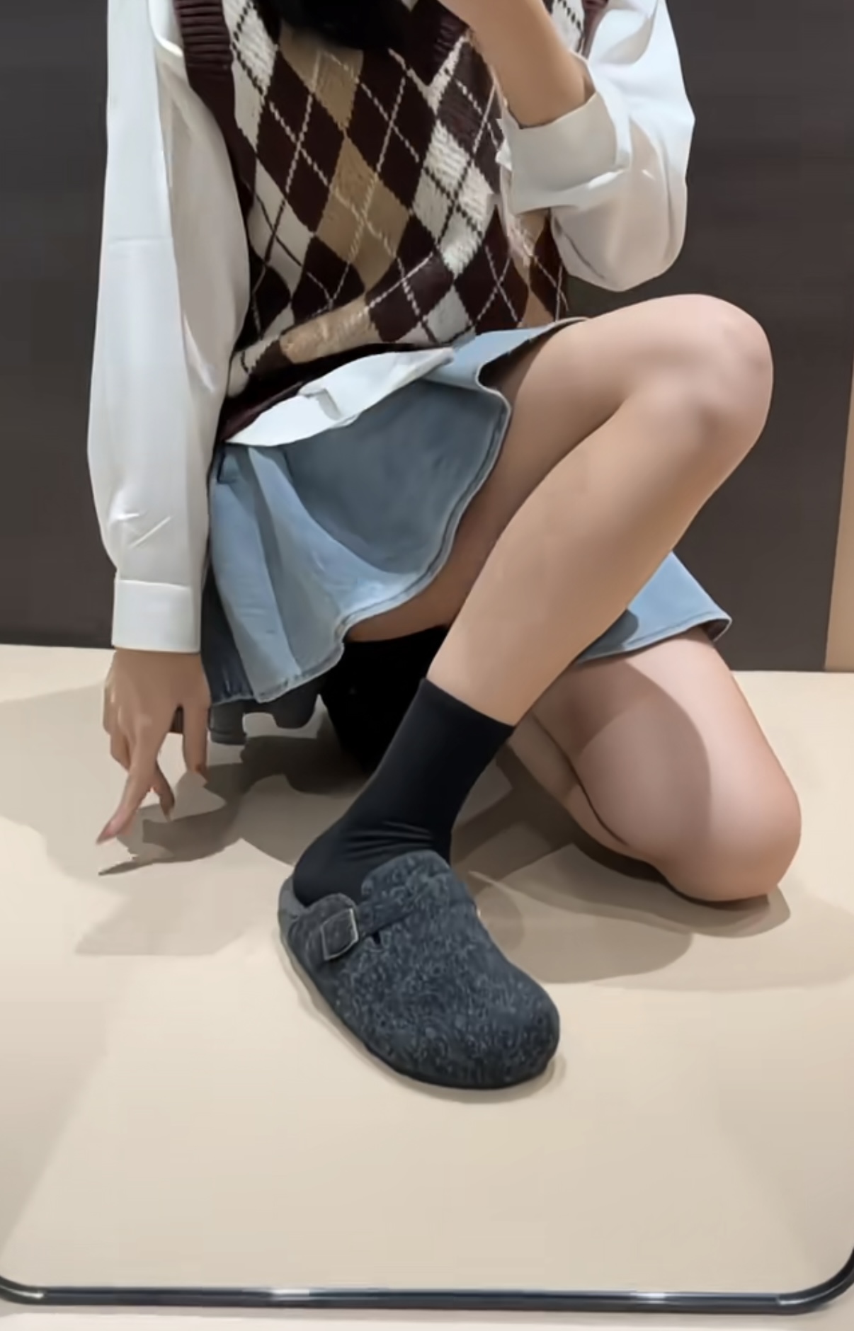 復古勃肯輪廓結合厚底設計,內增高約 5CM,穿上自然拉長比例;毛呢鞋面+包頭設計,保暖度在線,外穿也不違和。