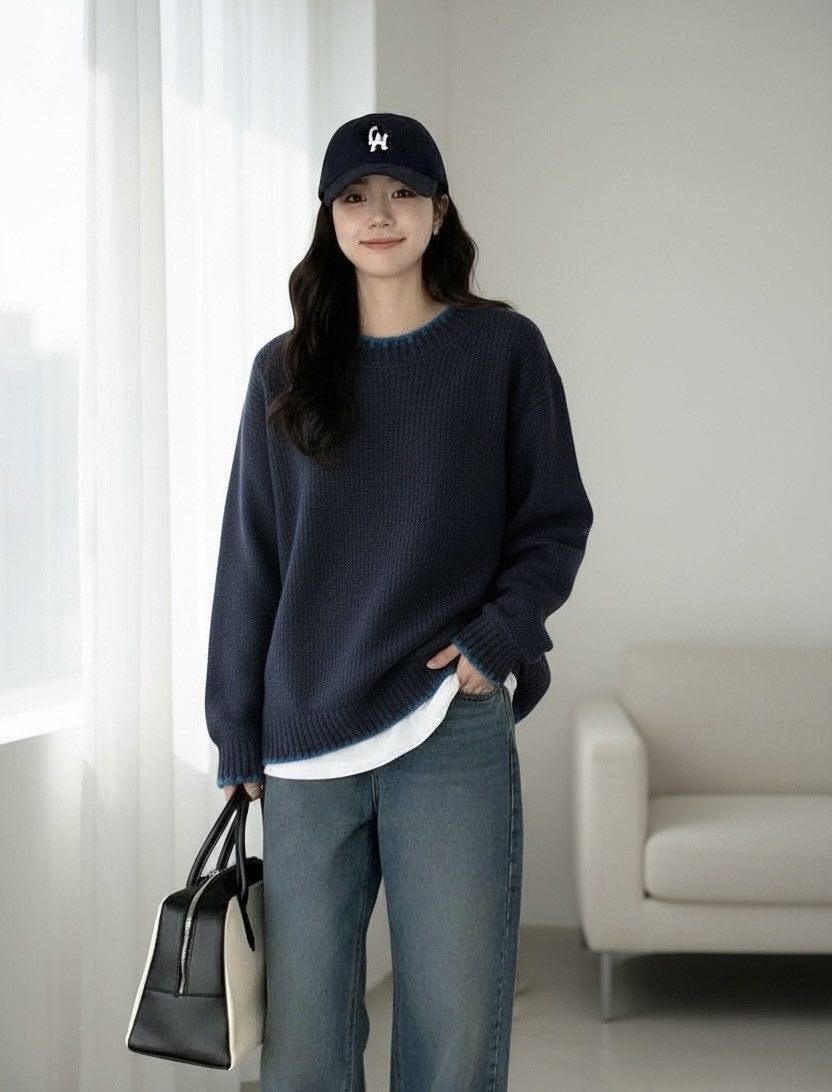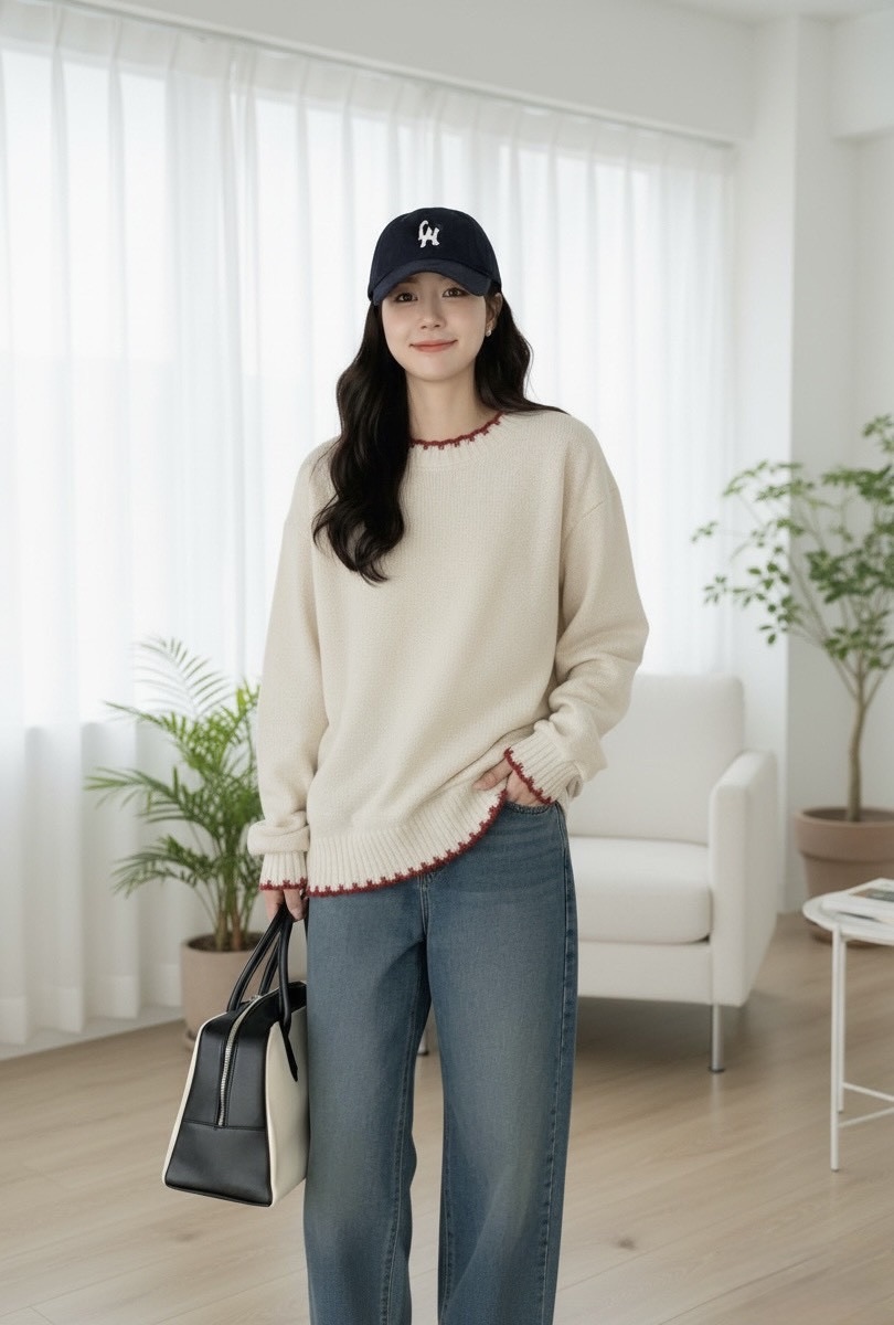 領口+下擺做 跳色小細節 簡單中有記憶點 不會太可愛,也不會太基本,剛剛好。