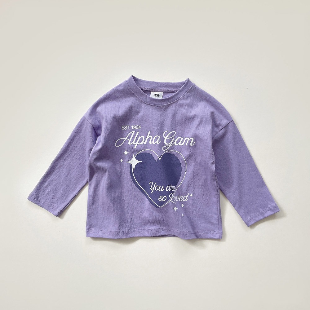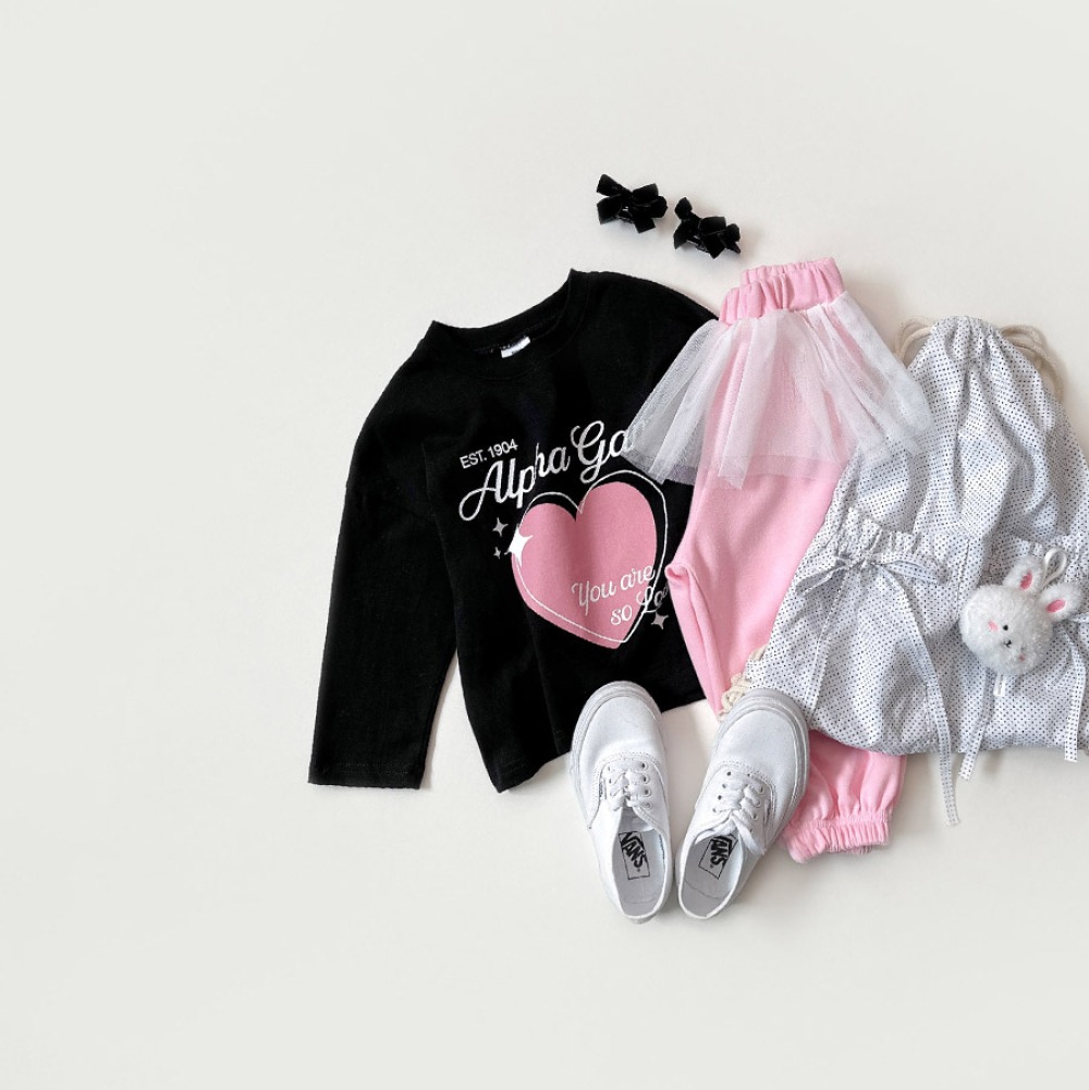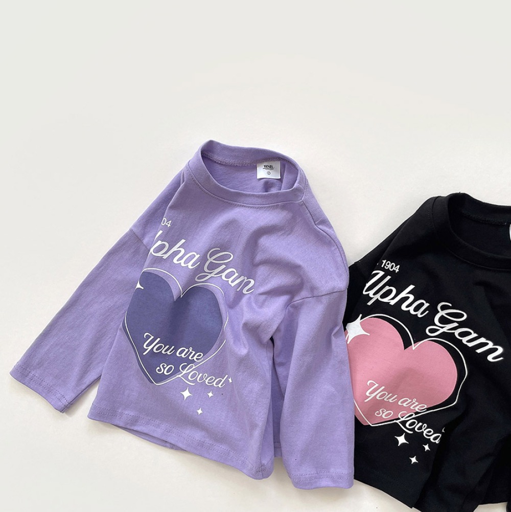 以愛心圖樣搭配手寫字樣,整體風格甜中帶酷,不會過度可愛,男女童都好搭,