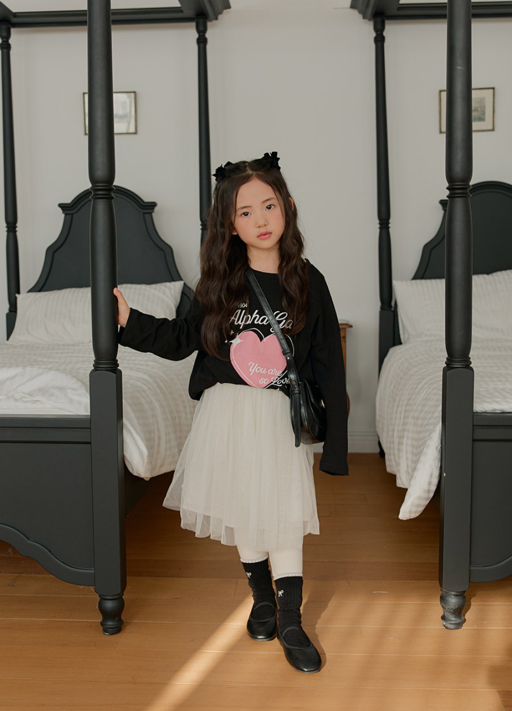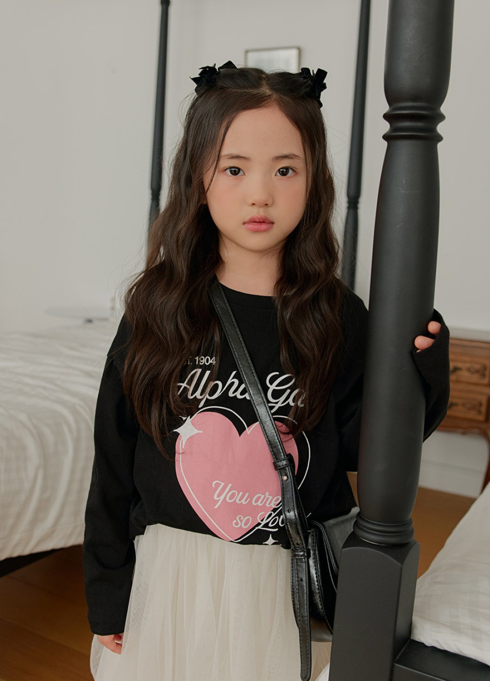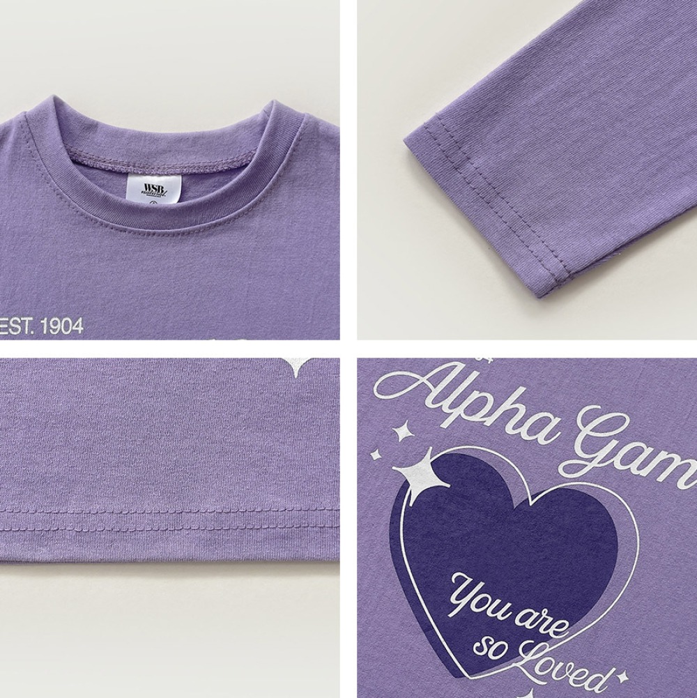 以愛心圖樣搭配手寫字樣,整體風格甜中帶酷,不會過度可愛,男女童都好搭,