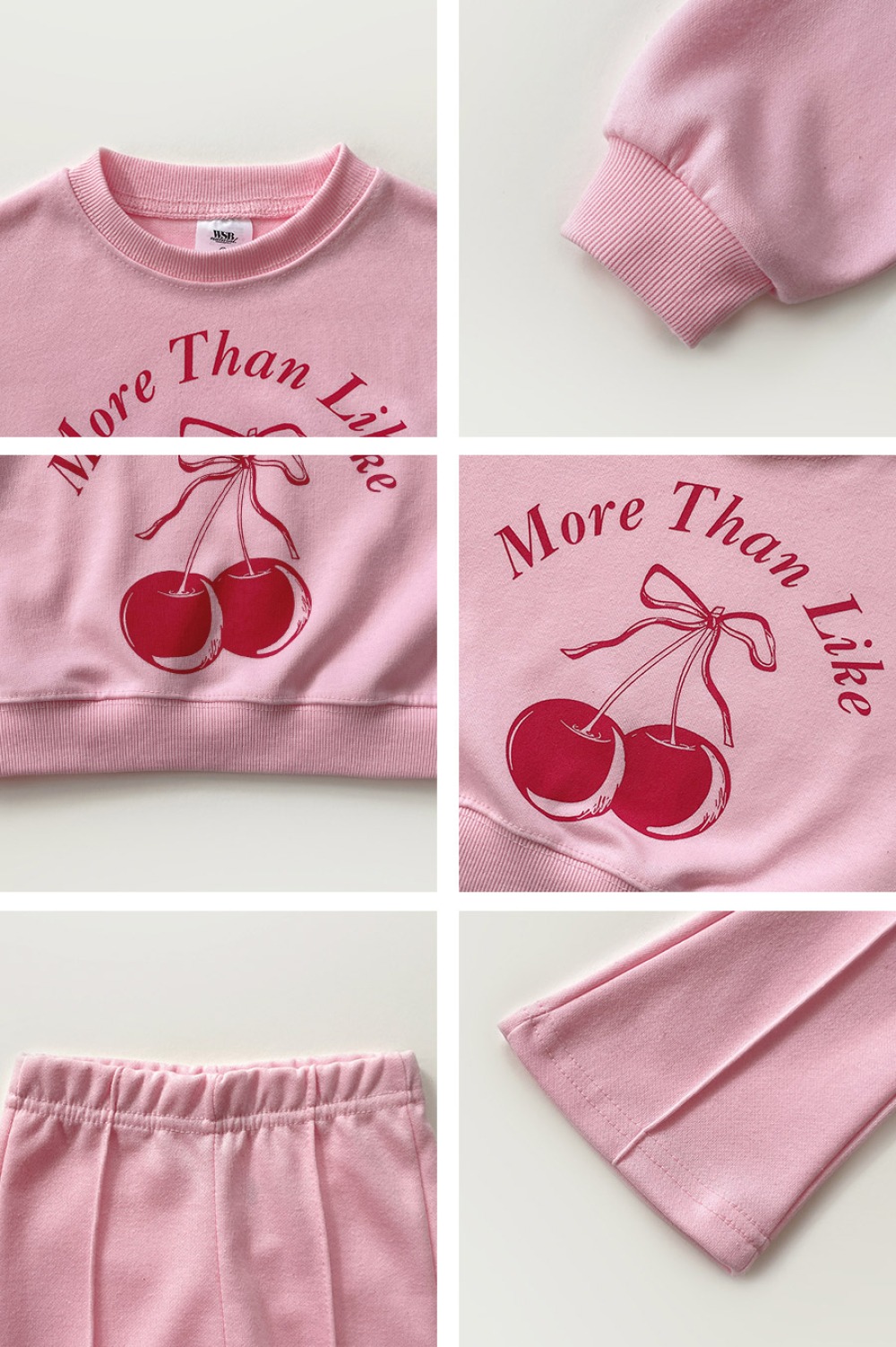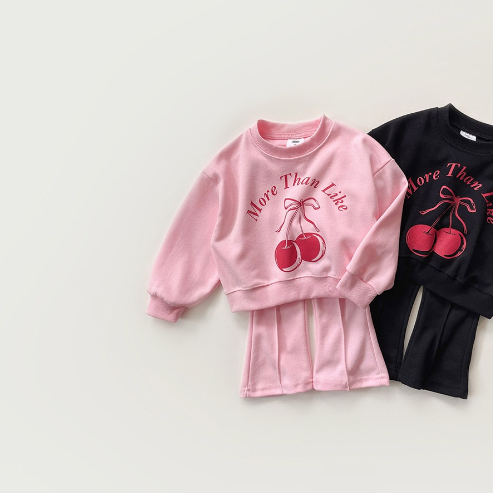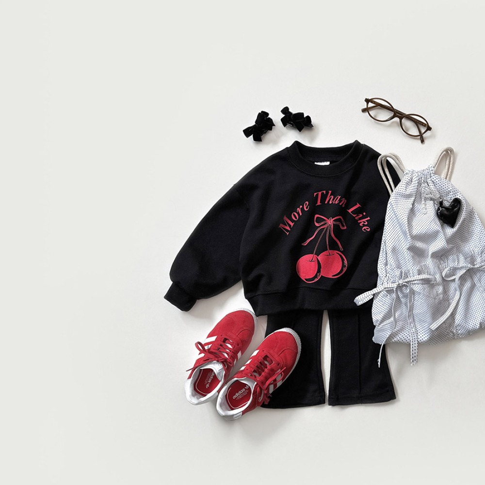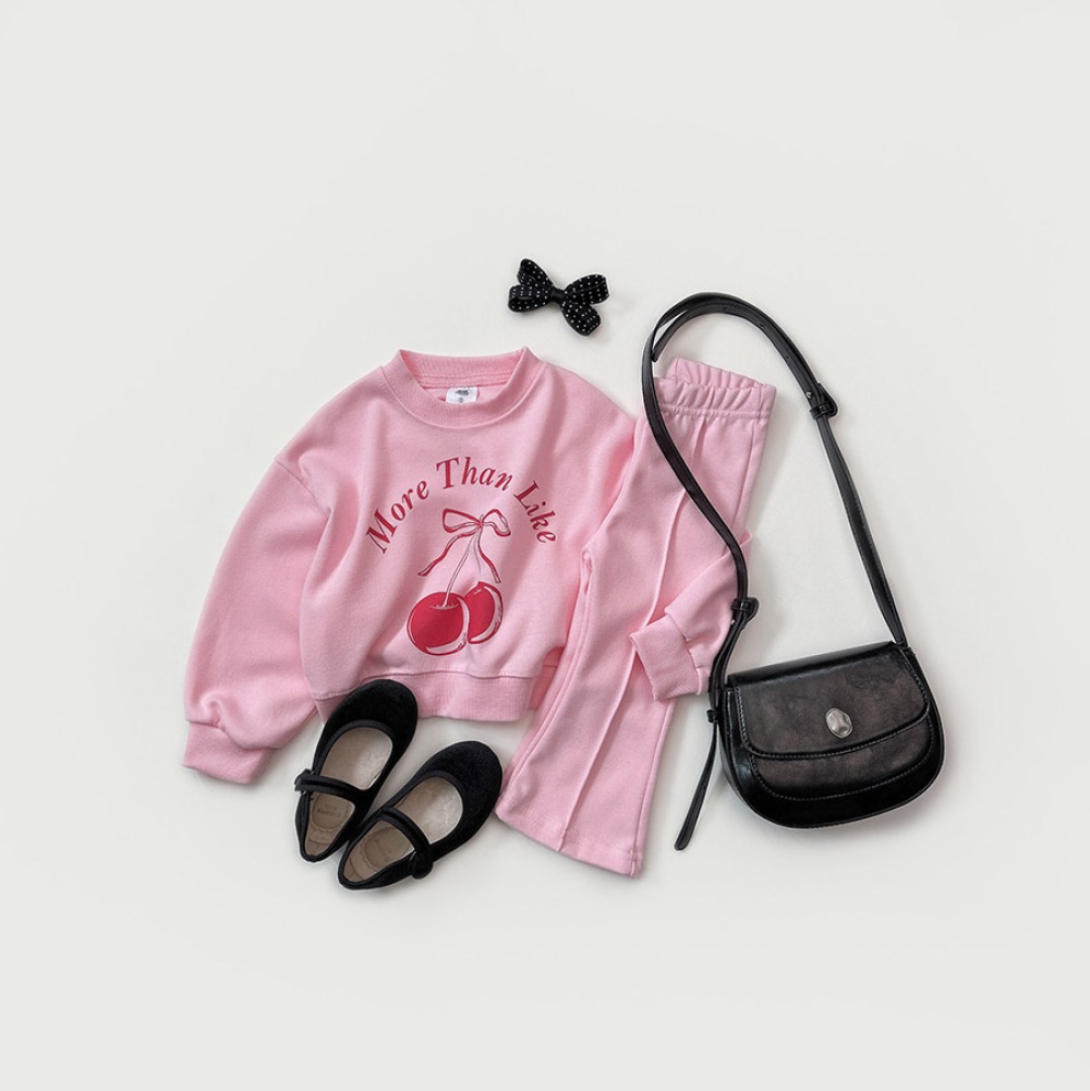 以可愛櫻桃圖案搭配字樣設計,甜而不膩,結合舒適剪裁,是日常與外出都很實穿的一套。