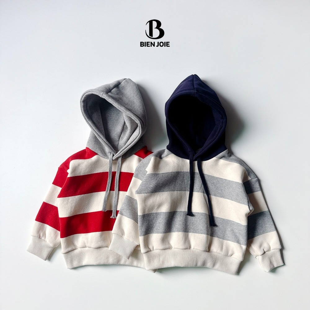 經典橫條搭配撞色帽身,視覺乾淨、有層次,不會退流行; 刷毛內裡保暖度夠,穿起來柔軟舒服,但不厚重、不悶。