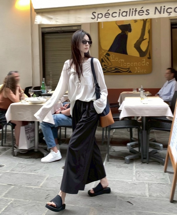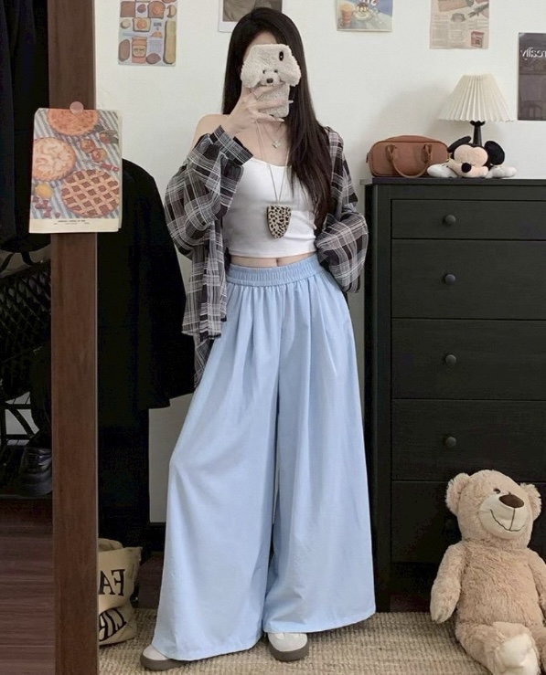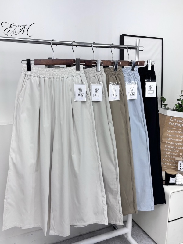 看起來是裙子 其實是寬褲設計 走路有飄逸感又完全不曝光💛 高腰鬆緊腰頭自然包覆小腹 褲管寬版剪裁修飾腿型 整體垂墜感超美 走路會有那種「很輕、很高級」的氛圍