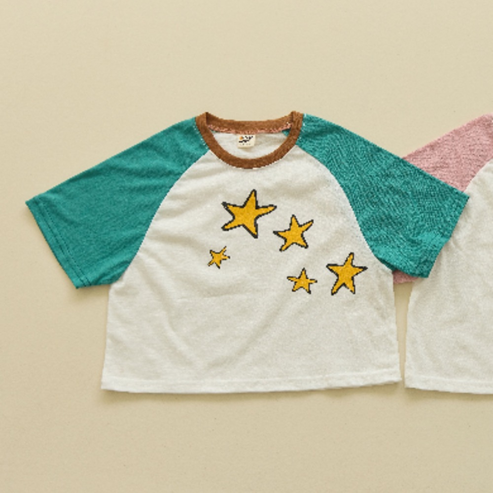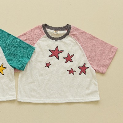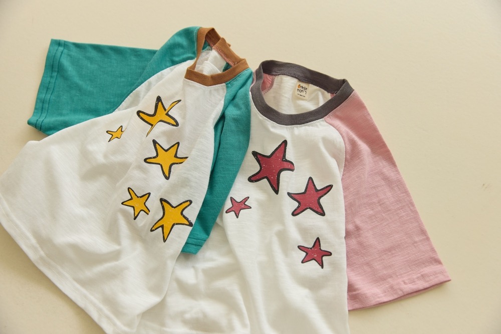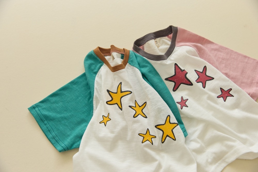 經典的拉格蘭袖(接袖)設計,配上不規則的手繪感星星印花,
