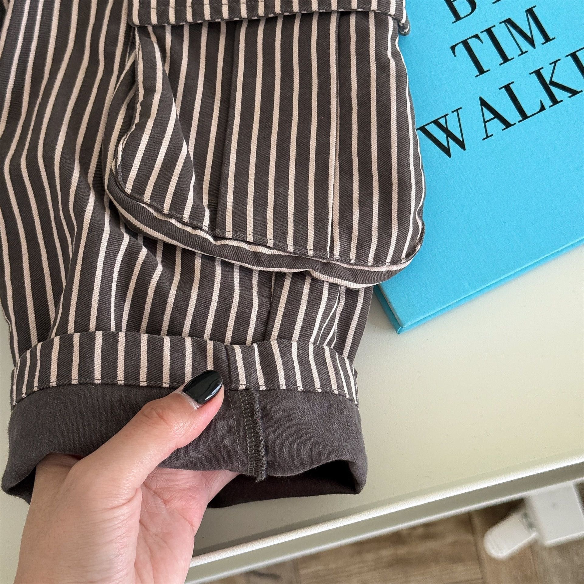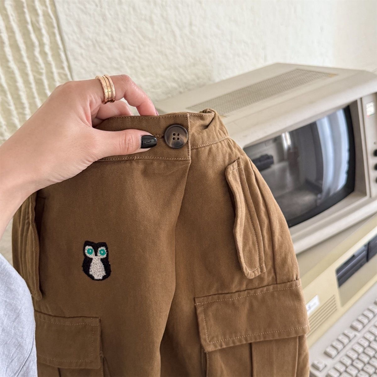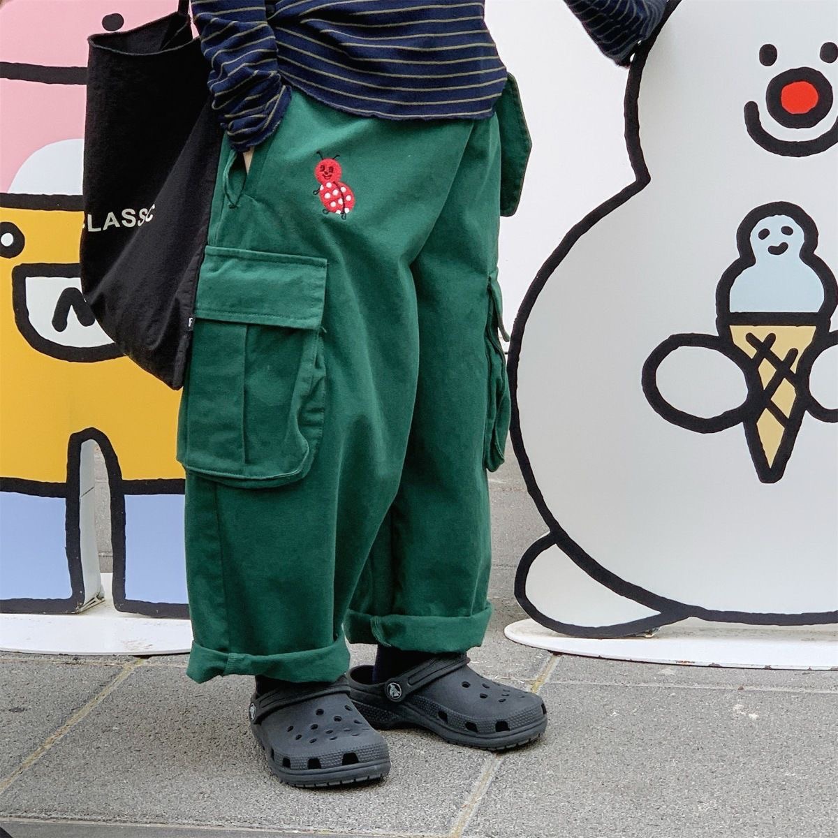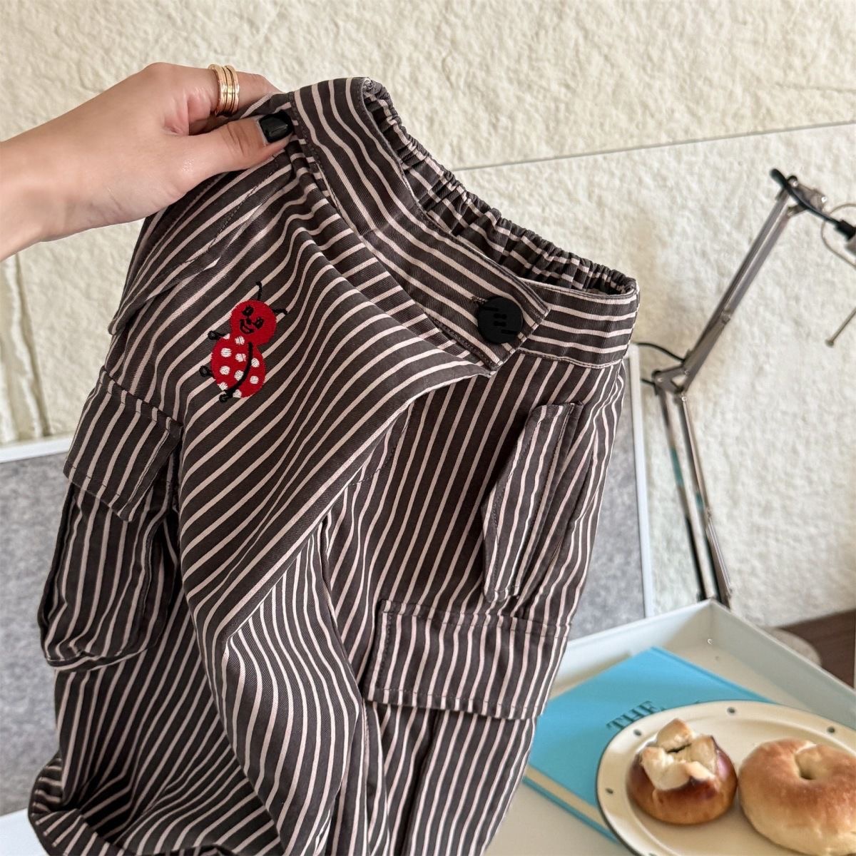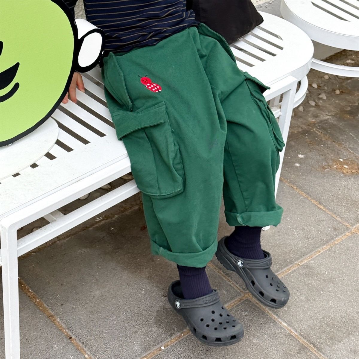 水洗棉立體口袋工裝褲 80-130cm $400 綠色/卡其/直條