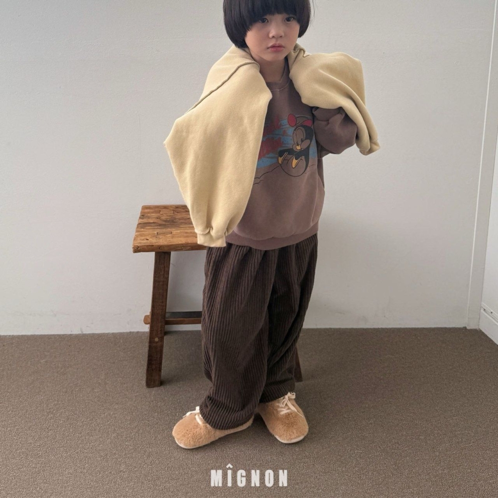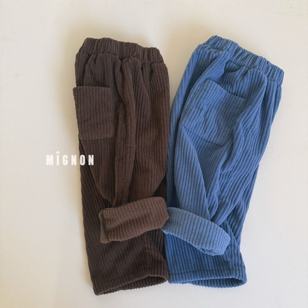 柔軟溫潤的 燈芯絨面料,微寬鬆剪裁搭配鬆緊腰設計,