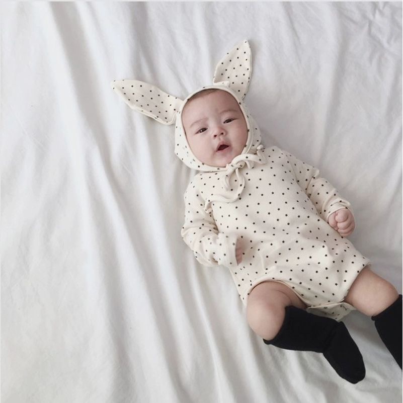 立體兔耳帽超療癒,連身剪裁讓寶寶穿著更方便。