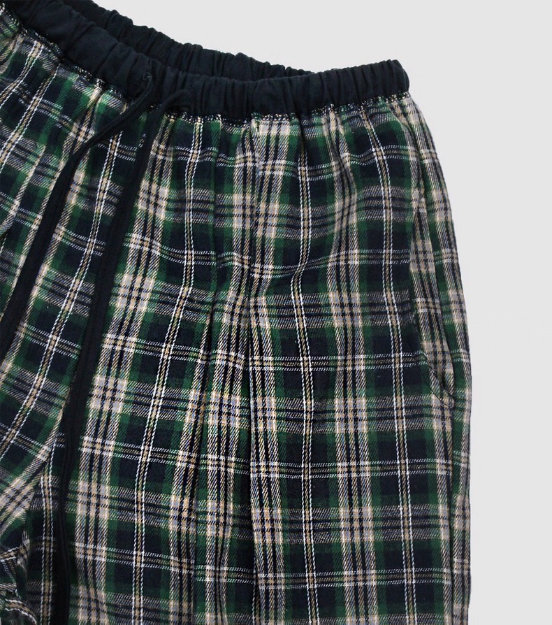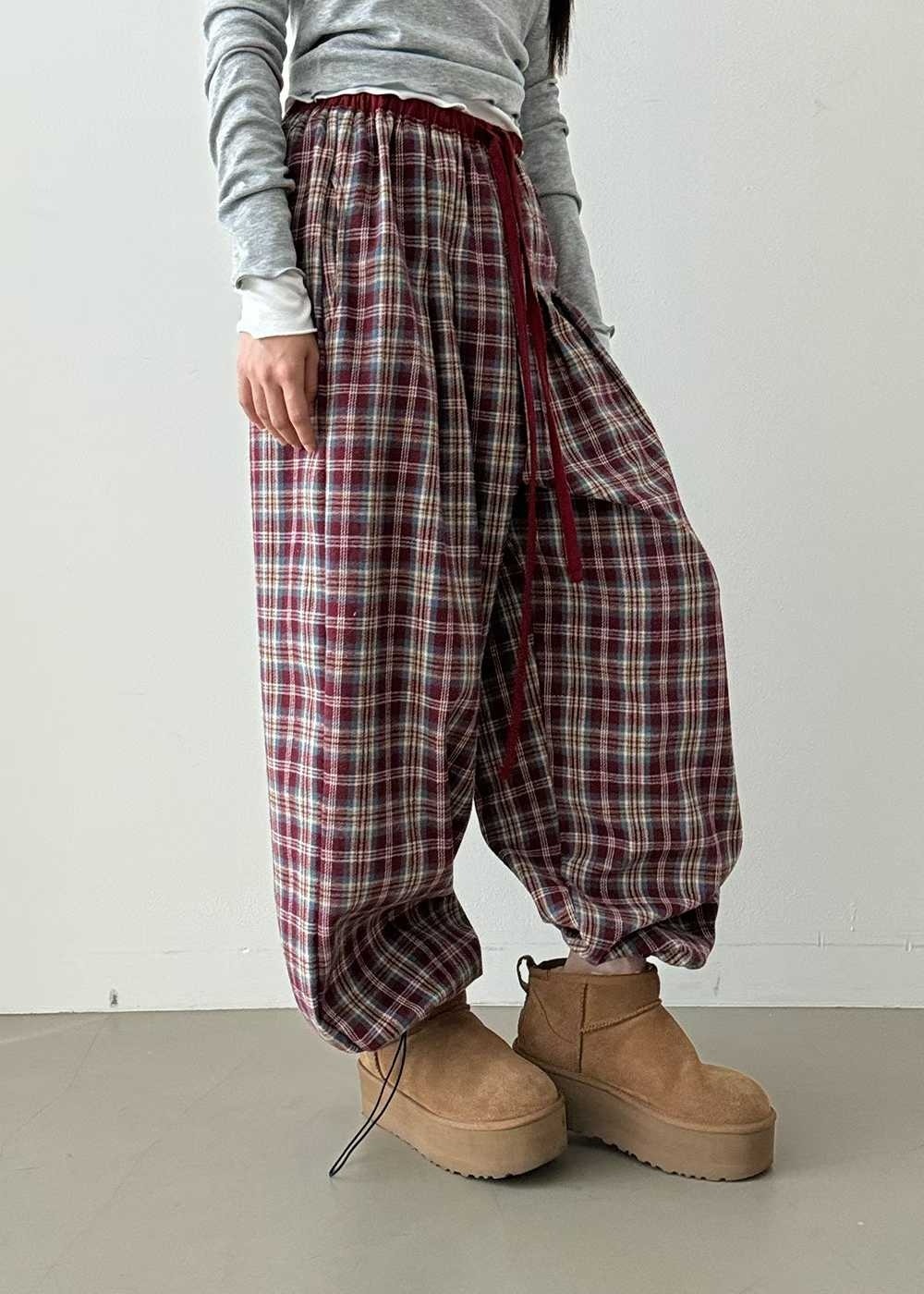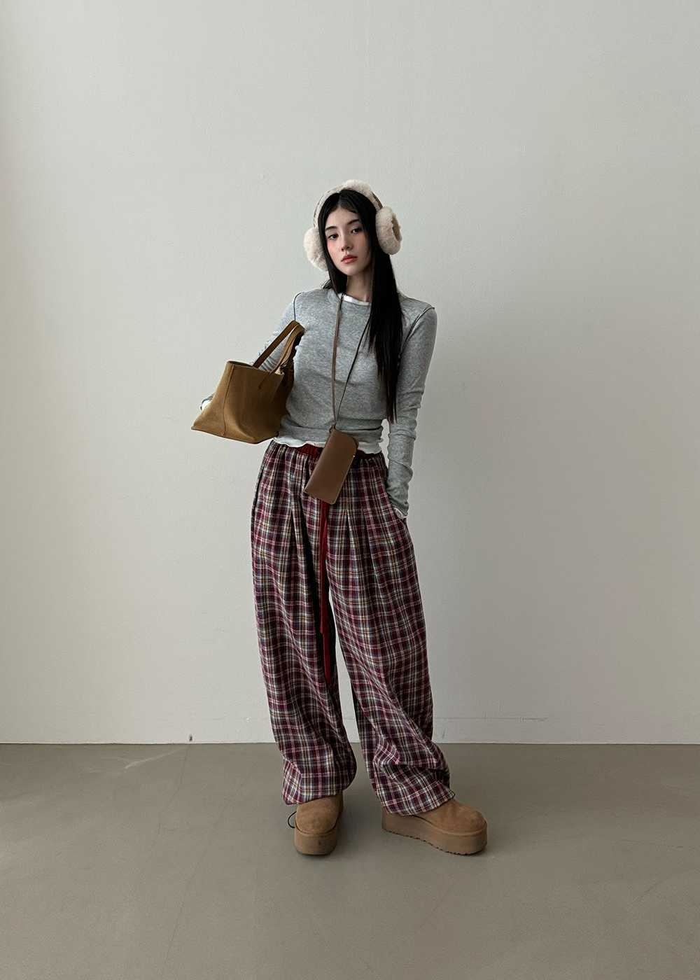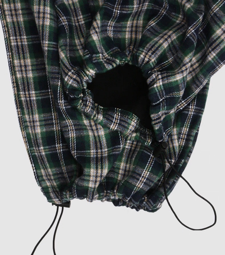 高腰抽繩設計搭配格紋拼色布料, 柔軟刷毛內裡加上束腳版型, 保暖又修飾比例, 一件搞定「率性+慵懶」的冬季氛圍穿搭。