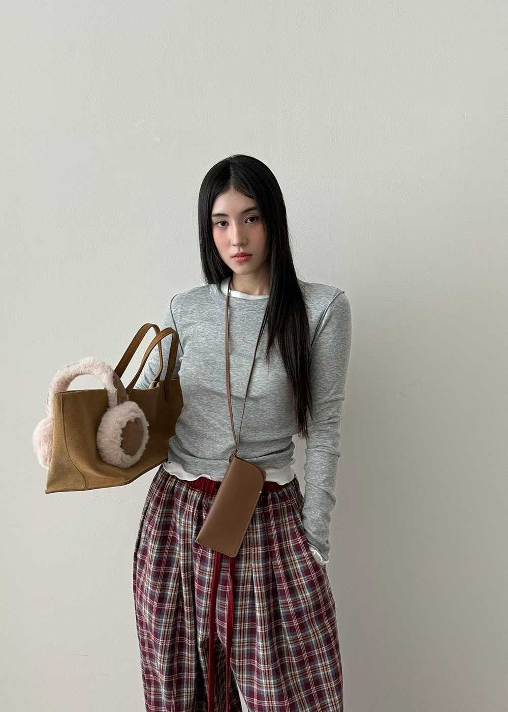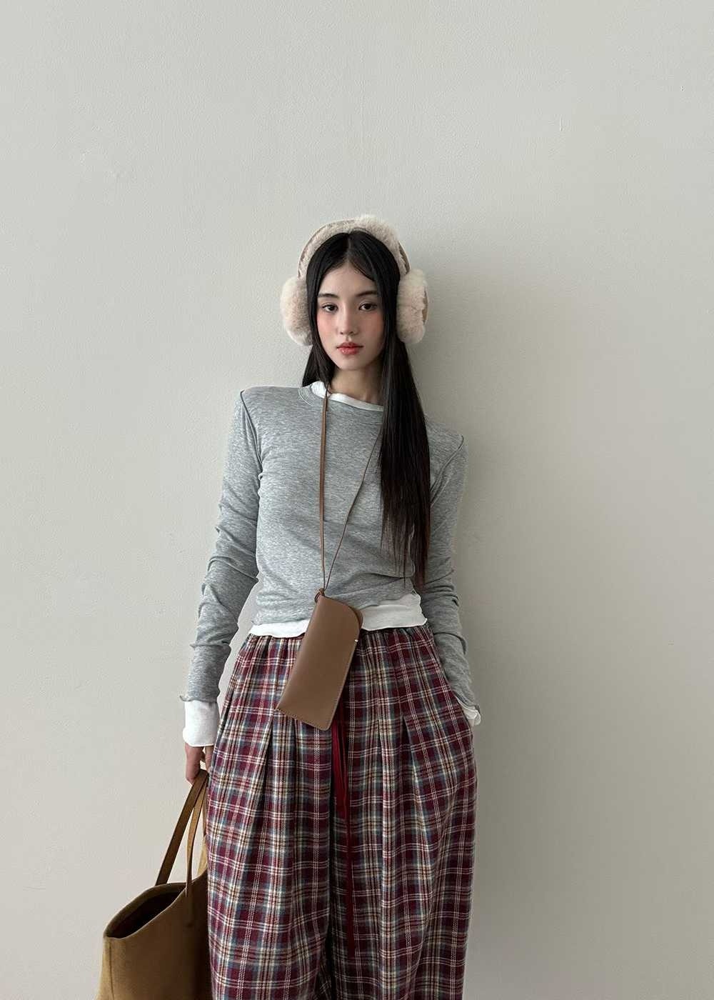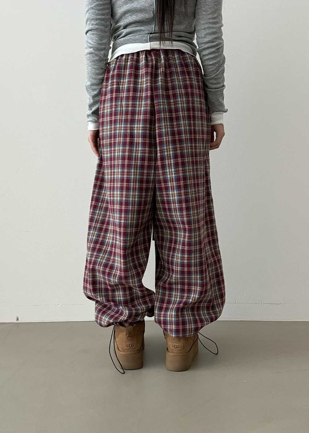 高腰抽繩設計搭配格紋拼色布料, 柔軟刷毛內裡加上束腳版型, 保暖又修飾比例, 一件搞定「率性+慵懶」的冬季氛圍穿搭。