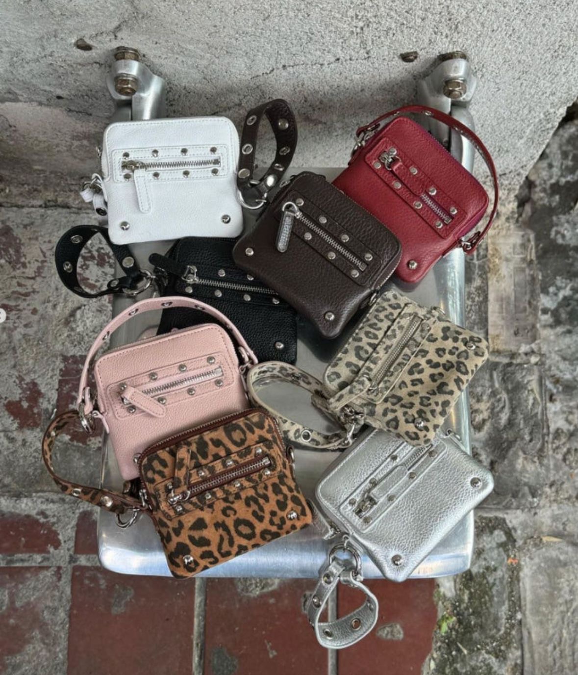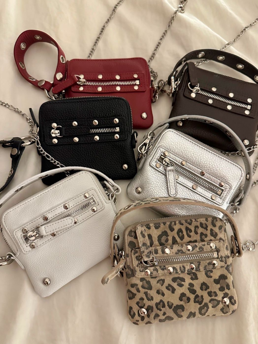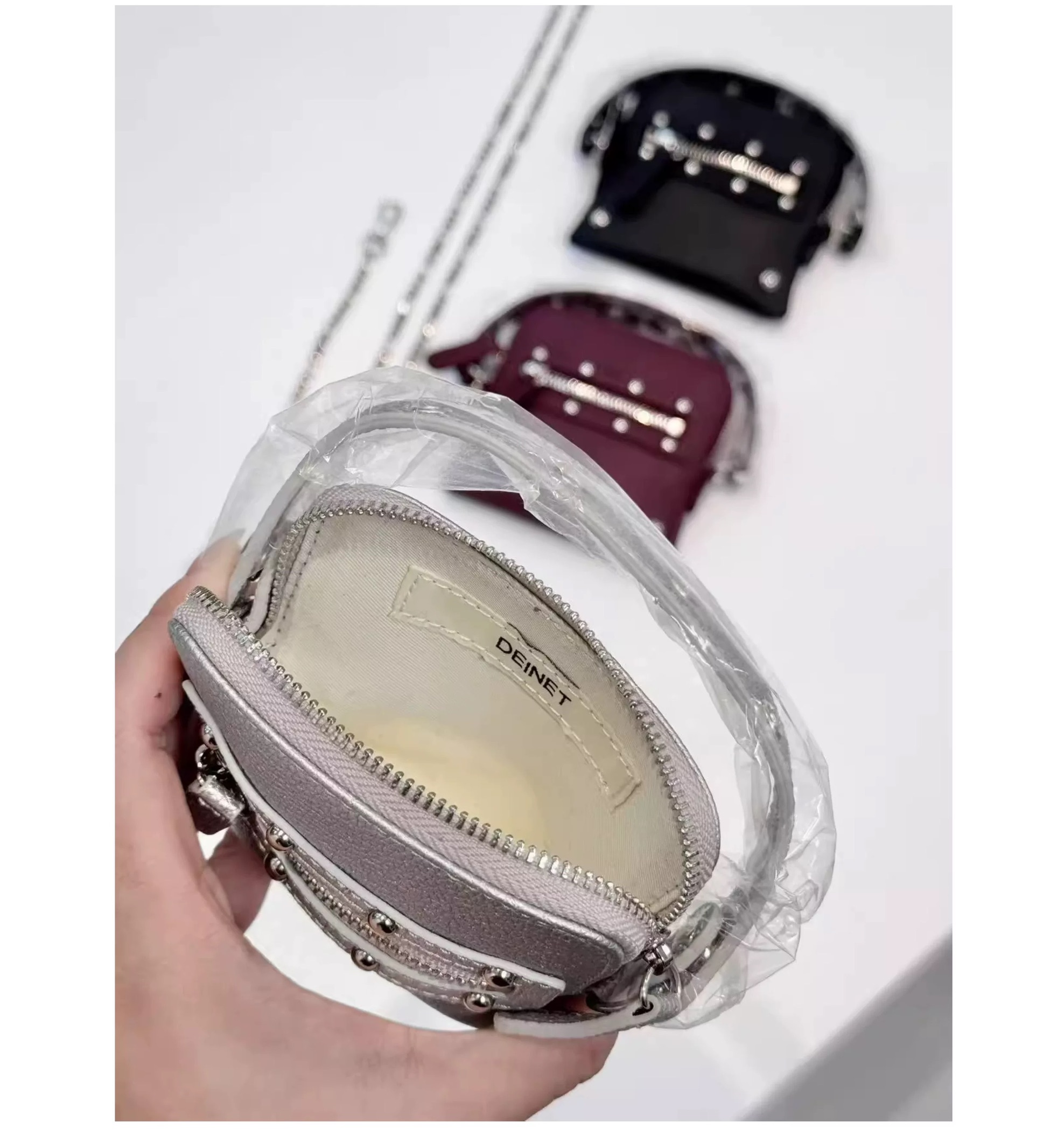 小眾潮流款式:韓國 DEINET 熱賣款,極簡硬挺+金屬鉚釘細節,街感直接到位。