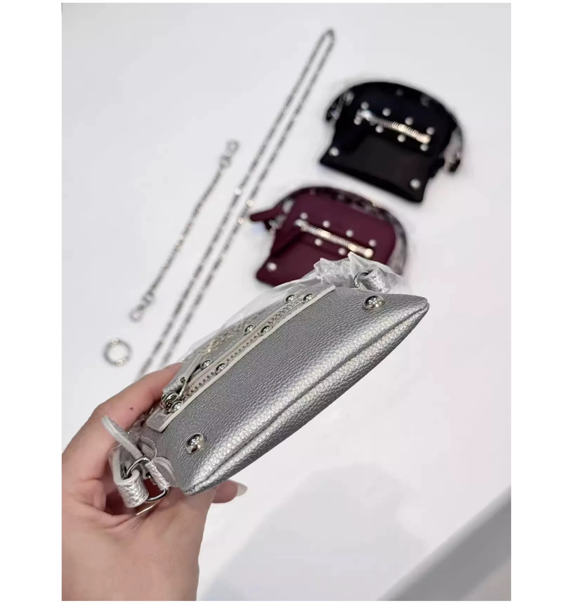 可拆卸鏈條:附 122cm 銀色鍊條,可肩背/斜背/掛在大包上做「層次配件」。