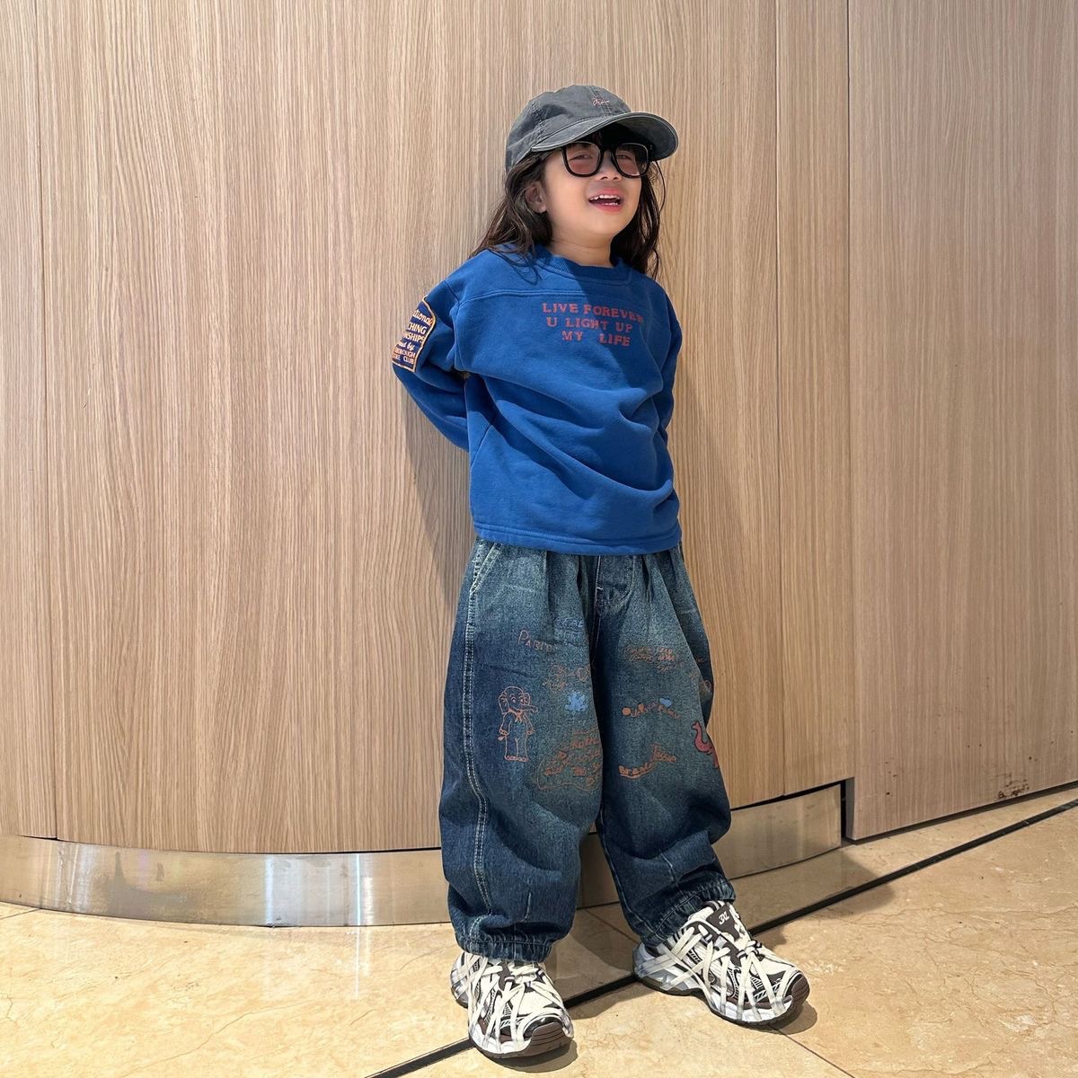 立體貼布+塗鴉印花: 造型感瞬間升級,街潮小大人 vibe 直接 ON。