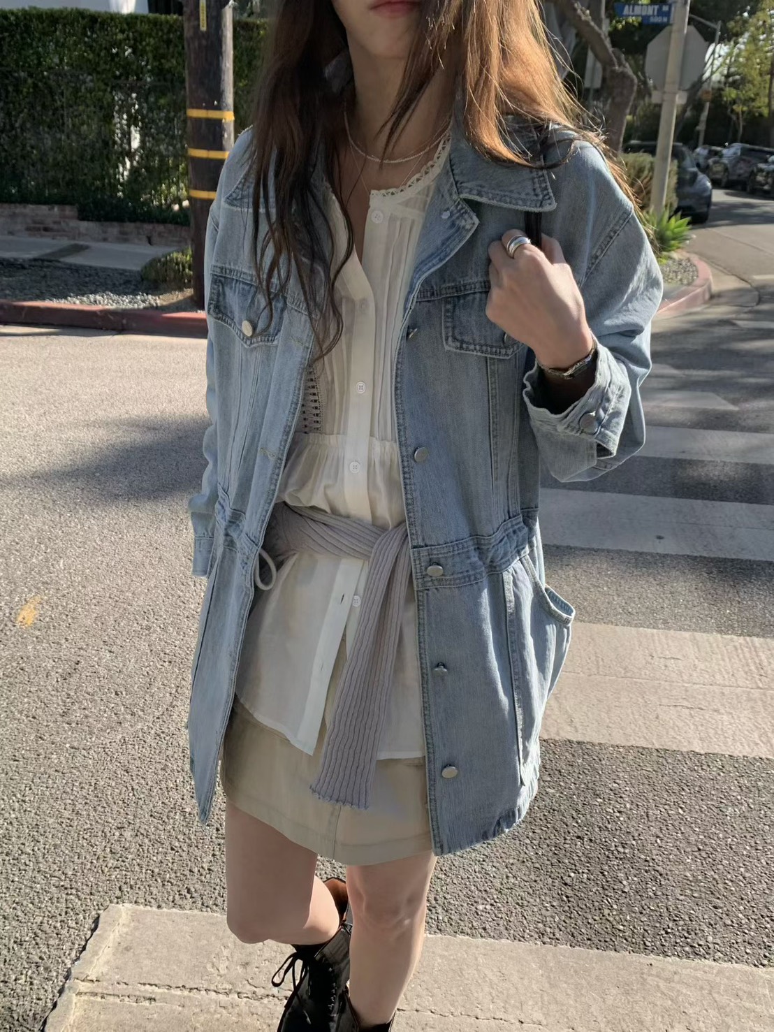 牛仔工裝休閒收腰外套