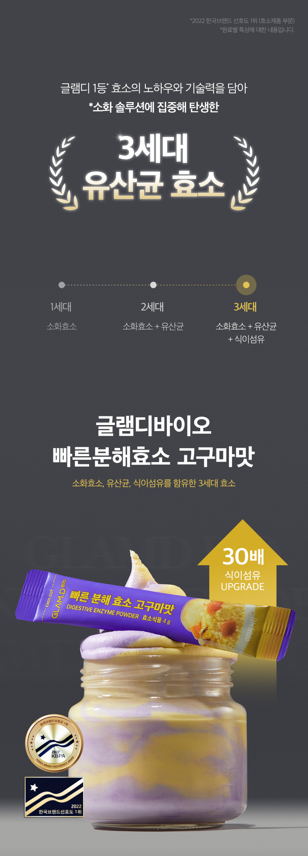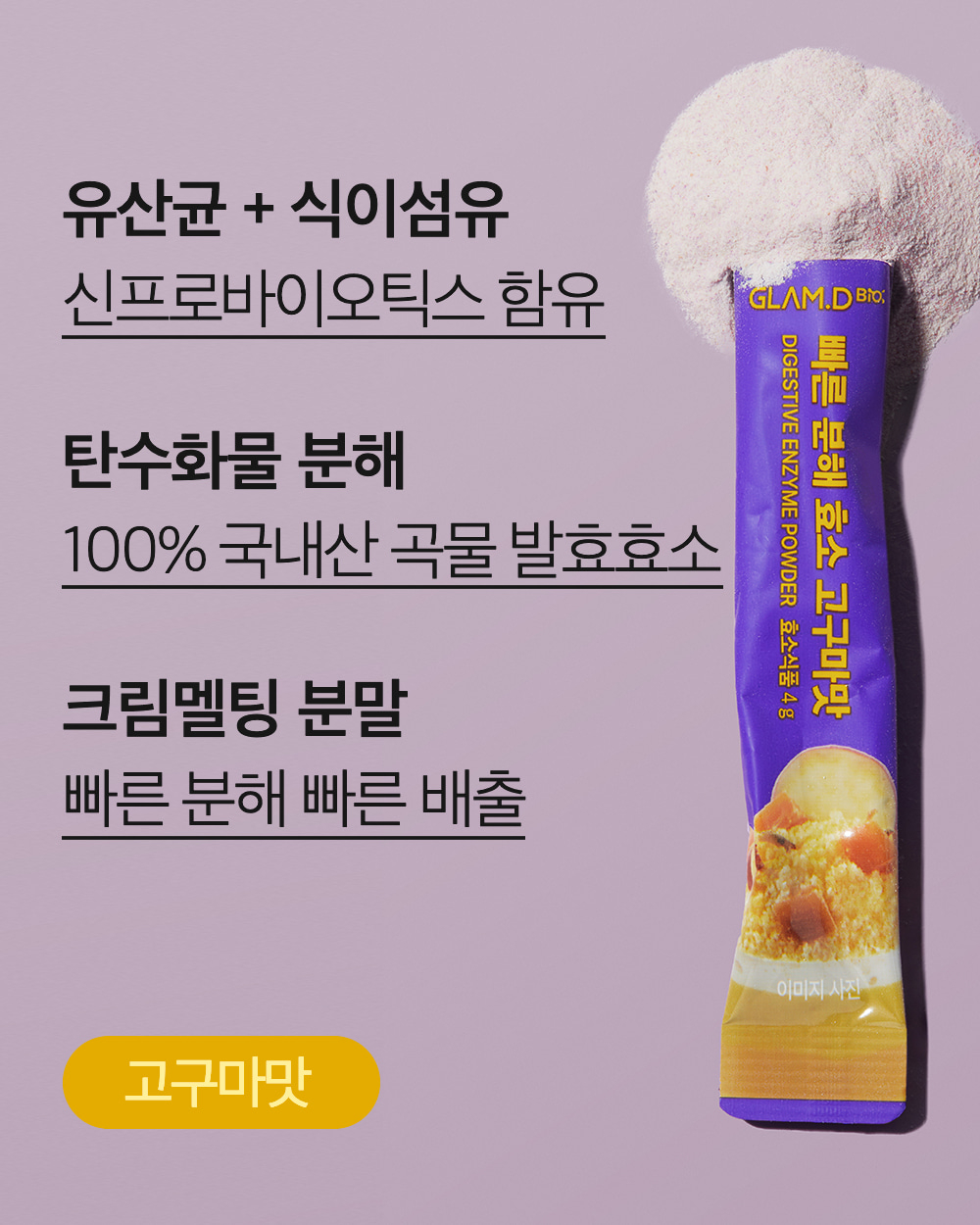 GLAM.D即時分解澱粉飯後酵素粉是一款韓國人氣產品,主打餐後一包,含α-澱粉酶和蛋白酶,