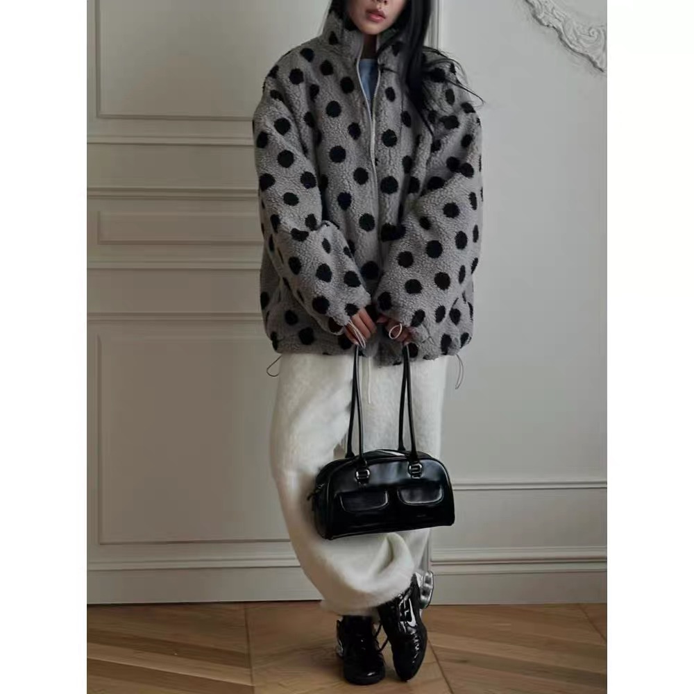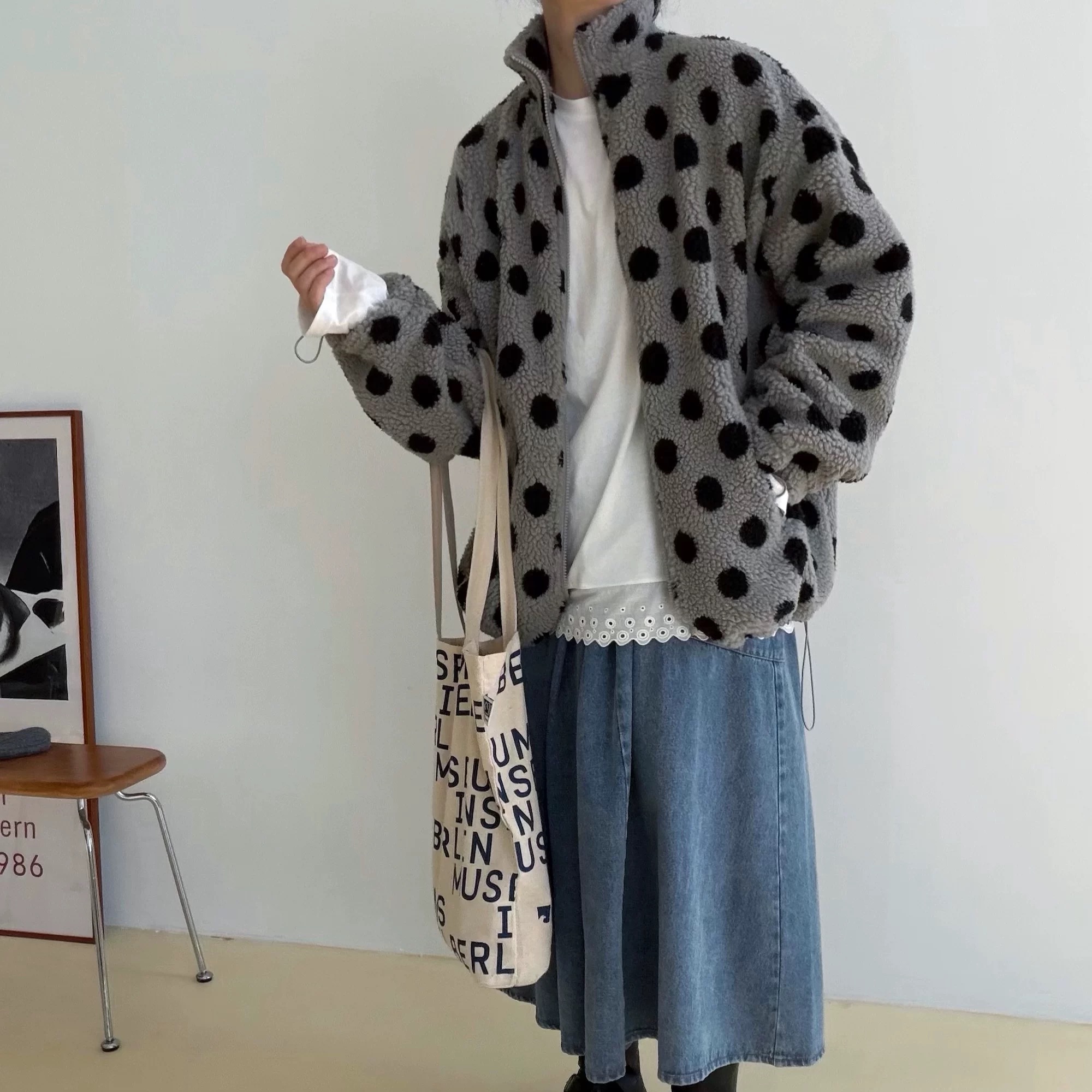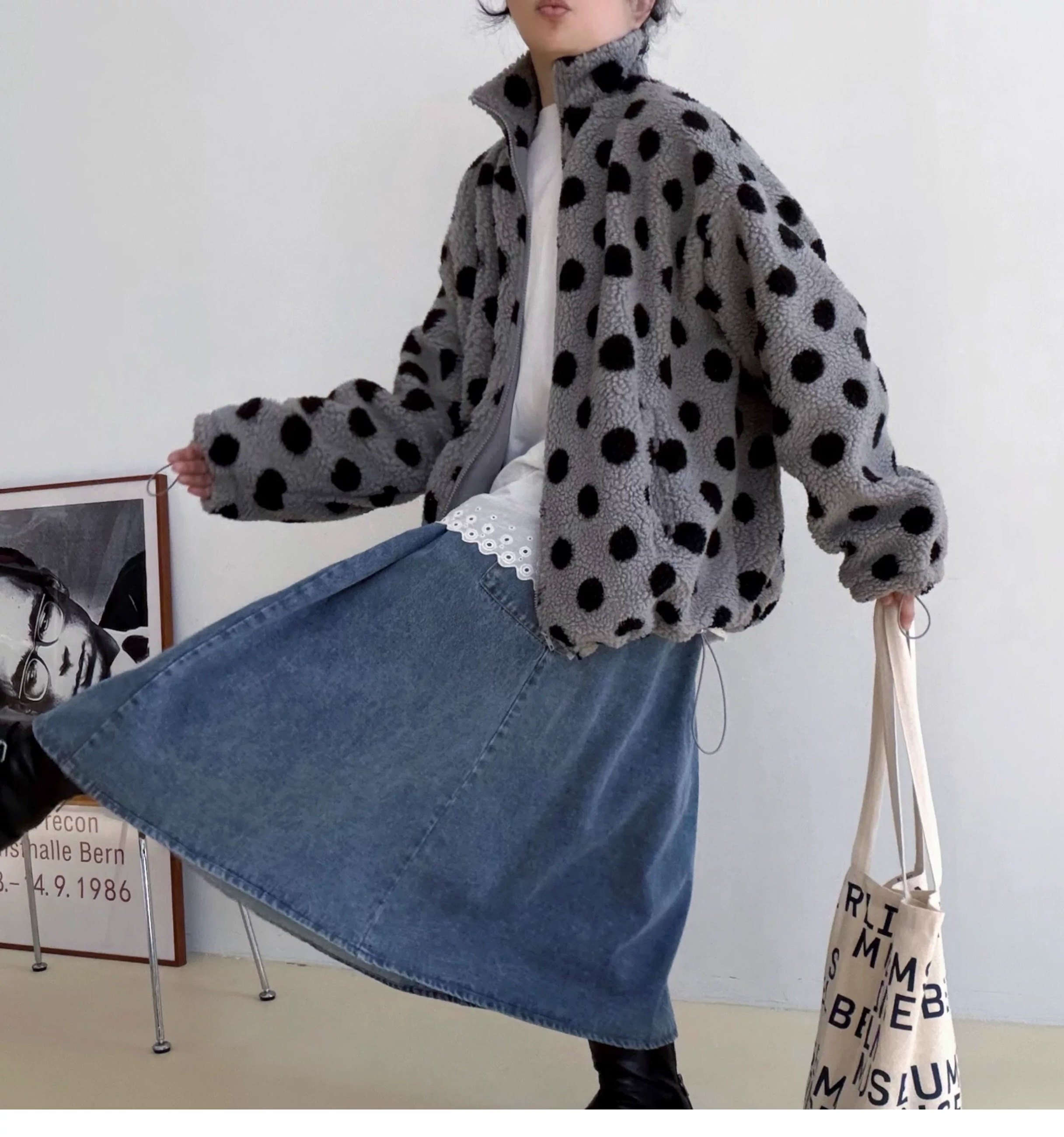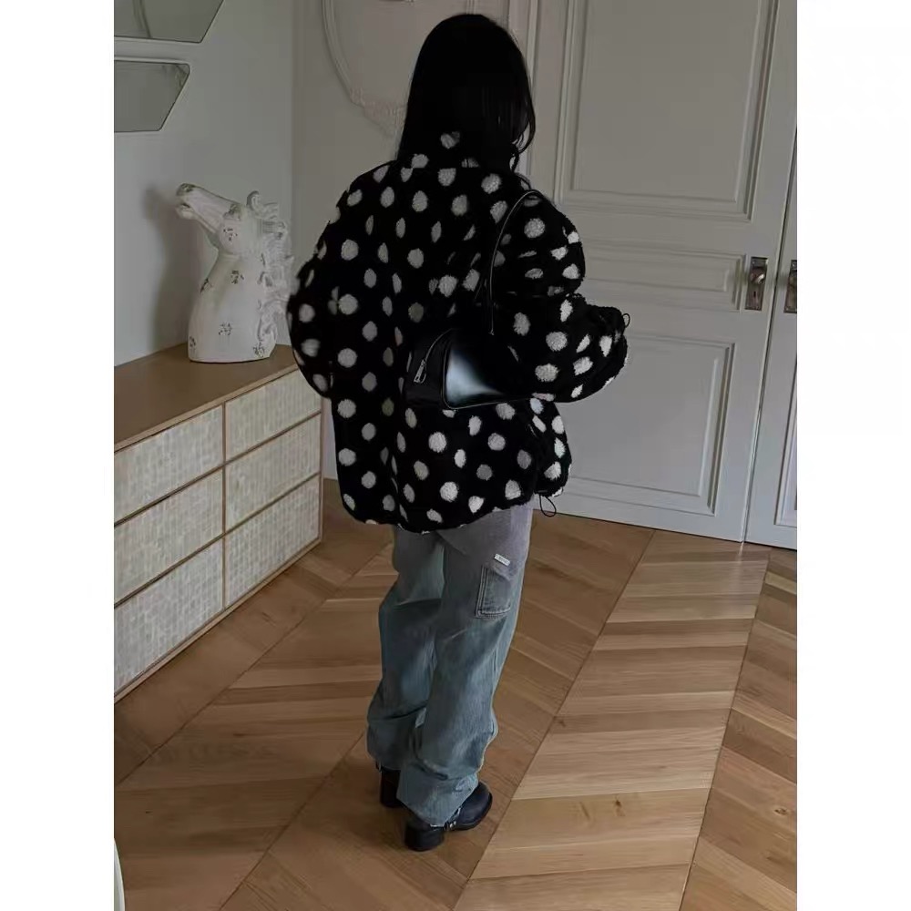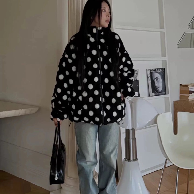立體波點設計,搭配蓬鬆羊羔絨材質,視覺可愛卻不甜膩。