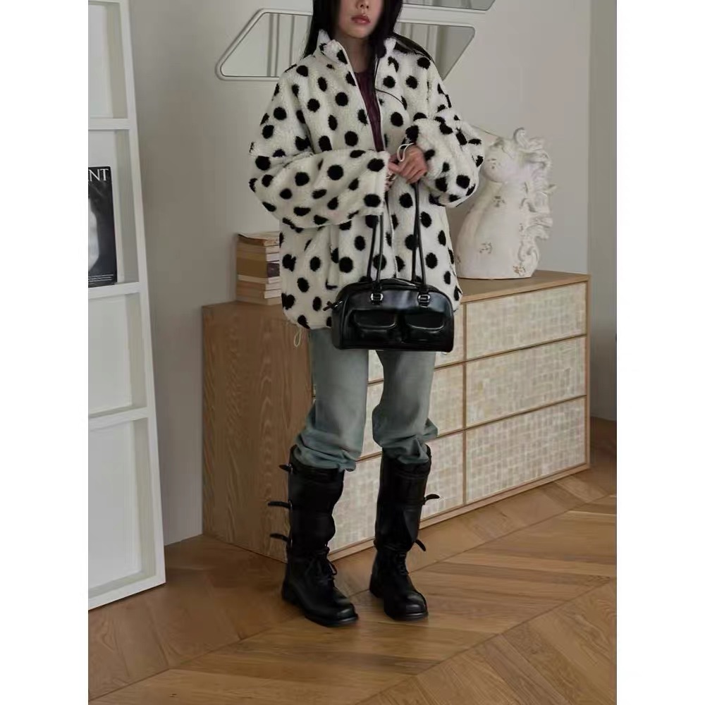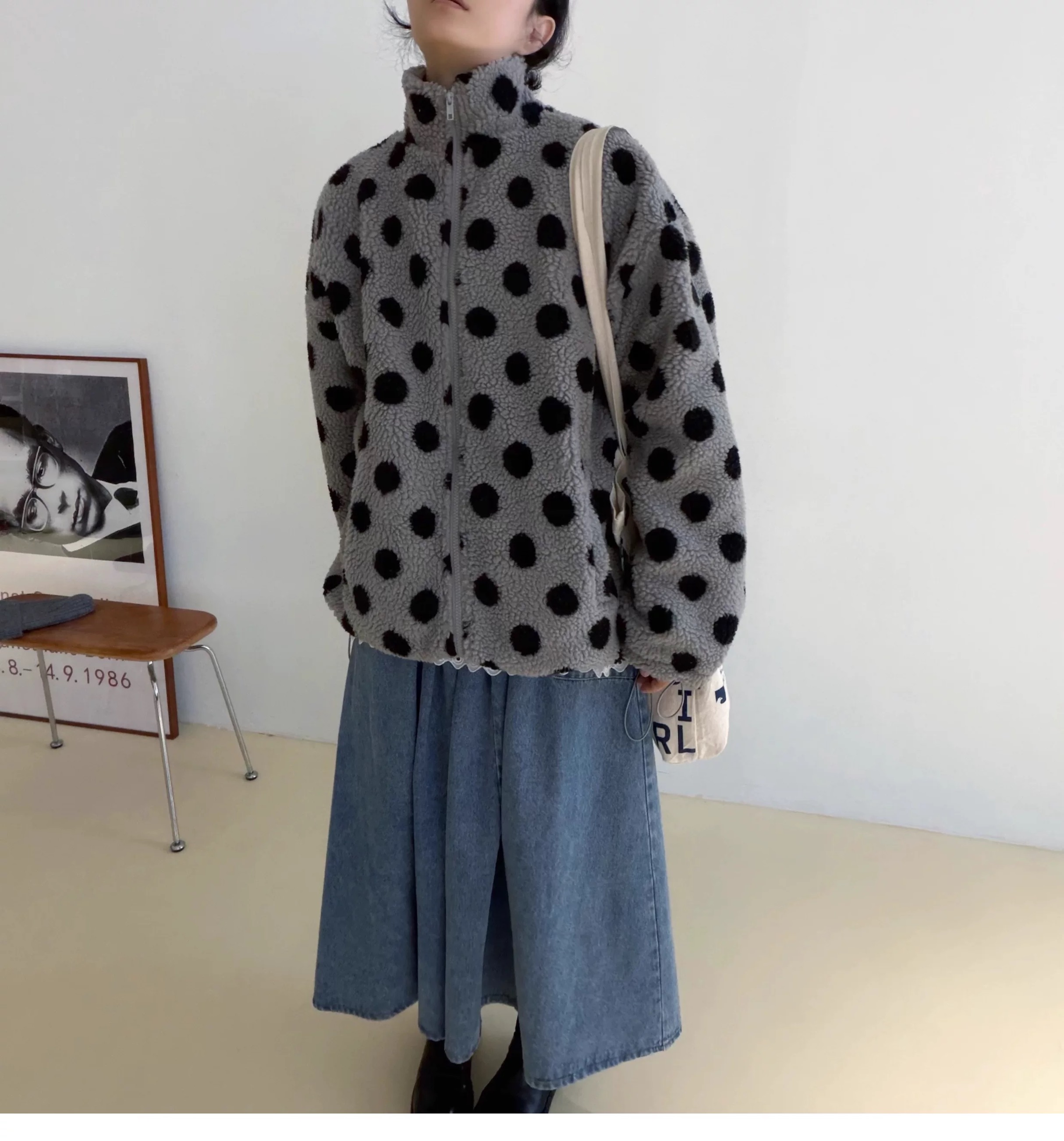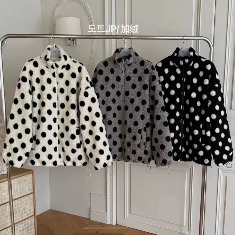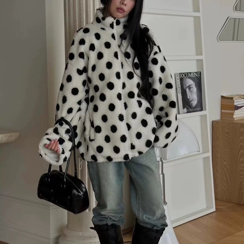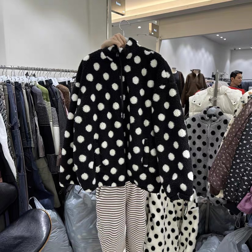 立體波點設計,搭配蓬鬆羊羔絨材質,視覺可愛卻不甜膩。