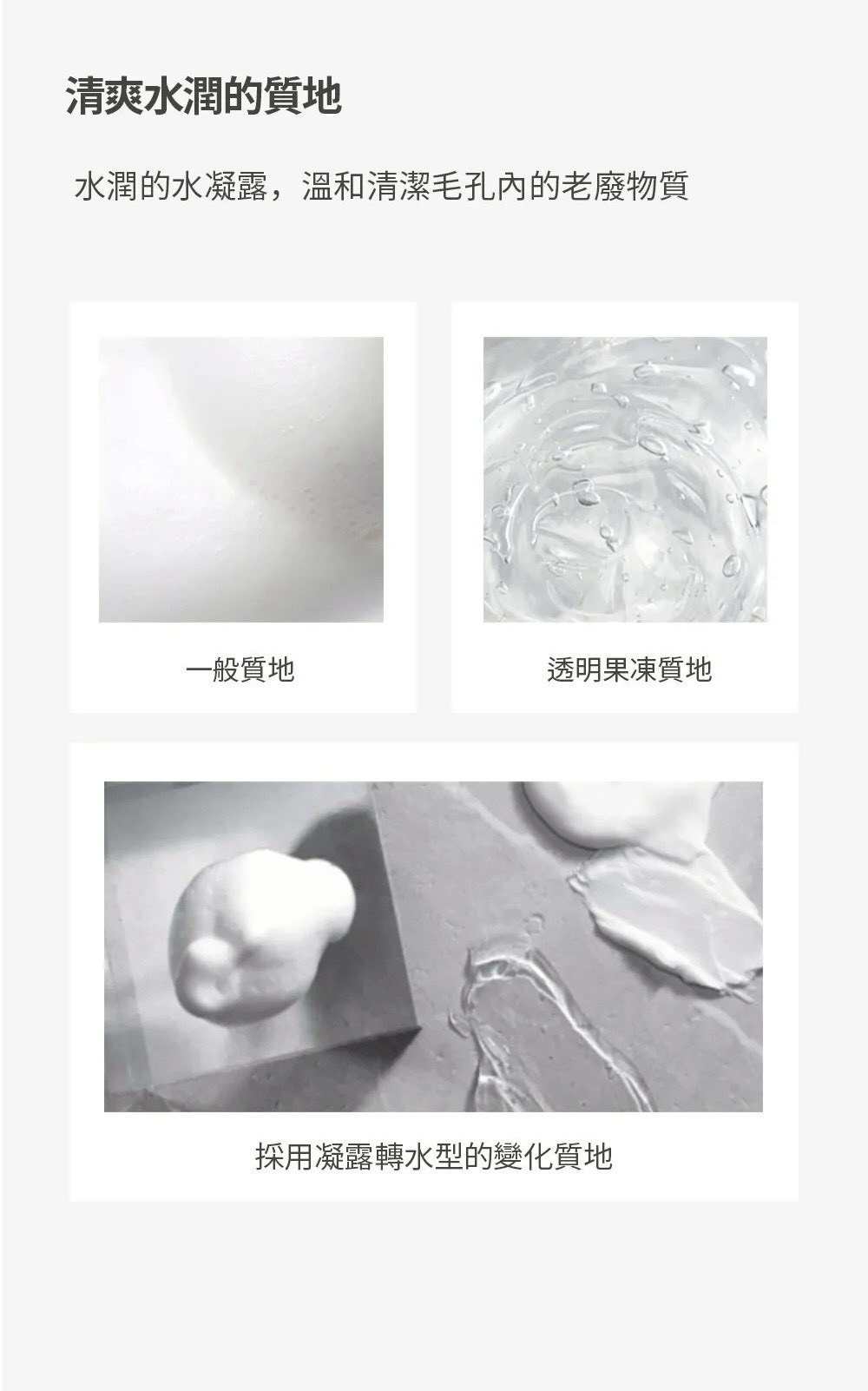 ✔ 透明Gel凝露質地「無泡沫」溫和清潔