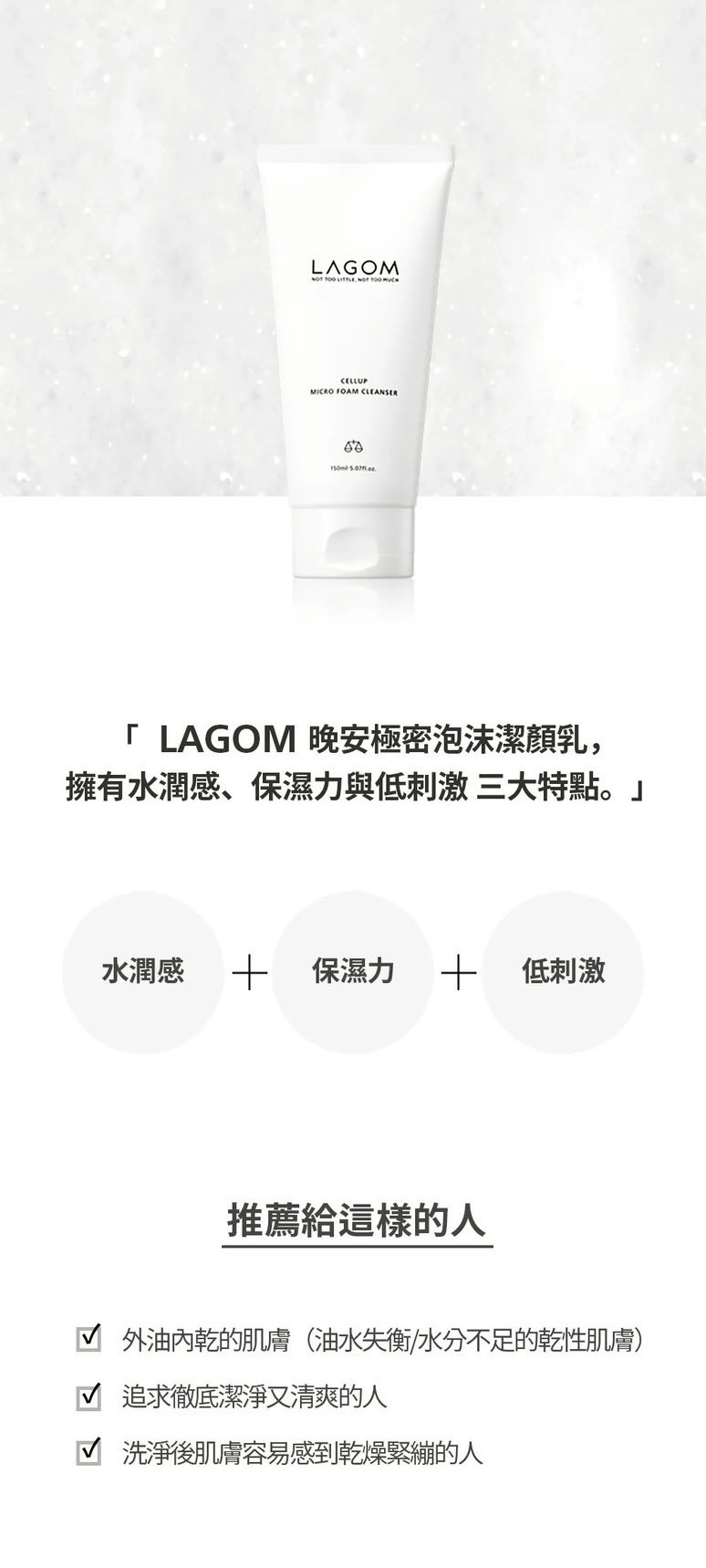 ✔ 洗去夜間皮脂與髒污,不帶走水分