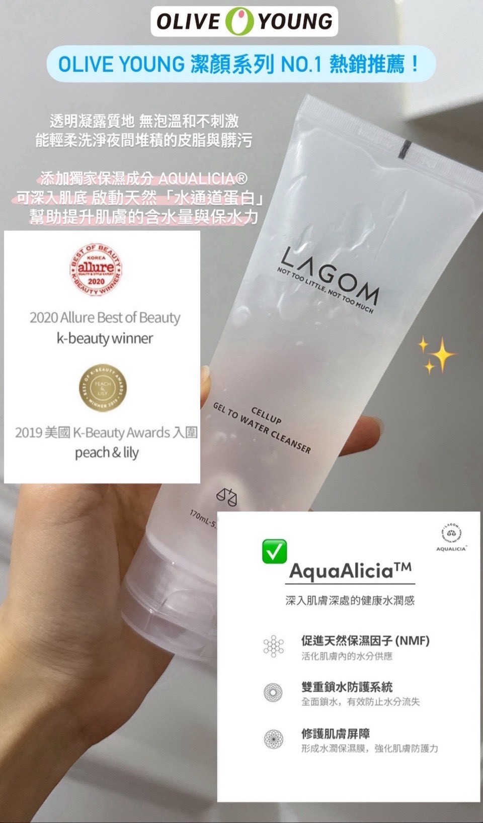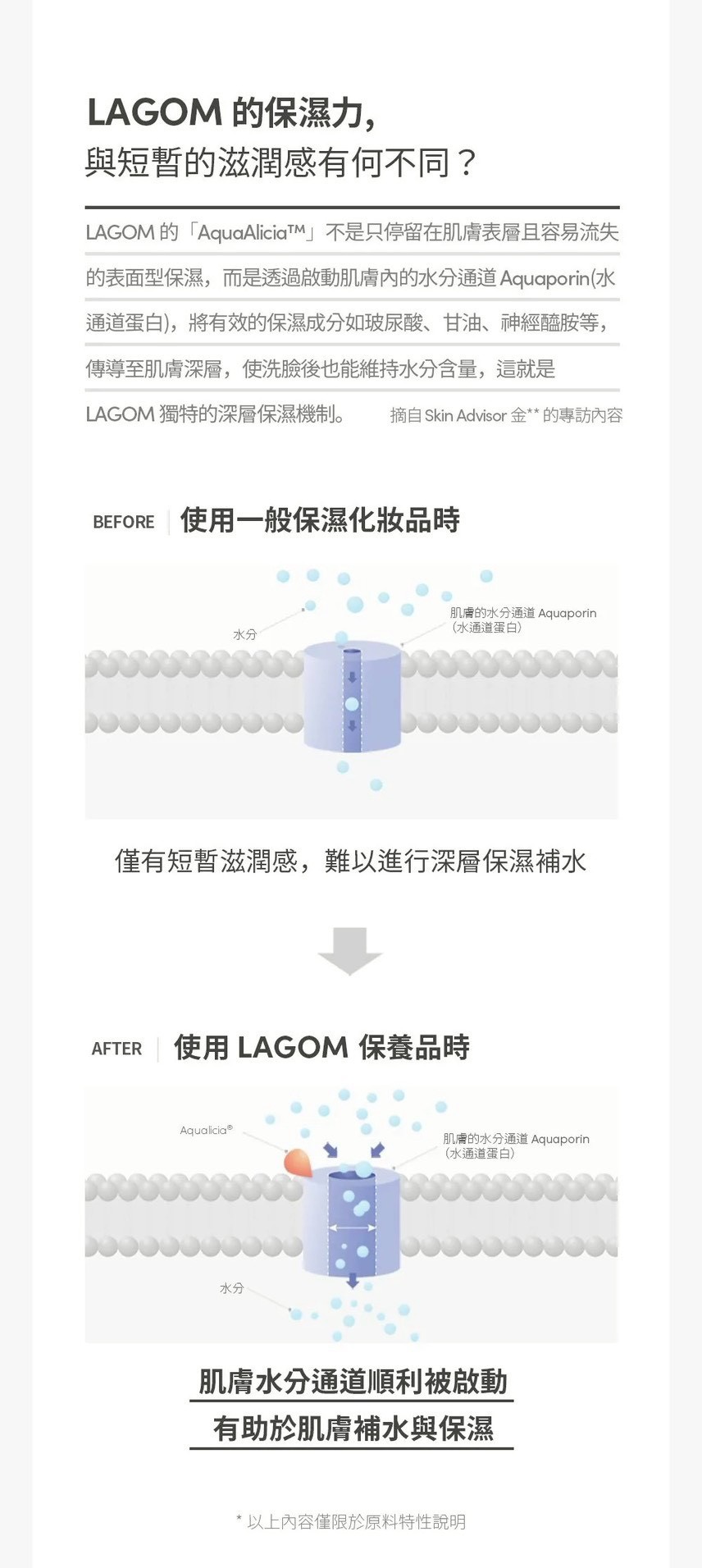 ✔ 添加獨家保濕成分 AQUALICIA®啟動「水通道蛋白」提升含水量