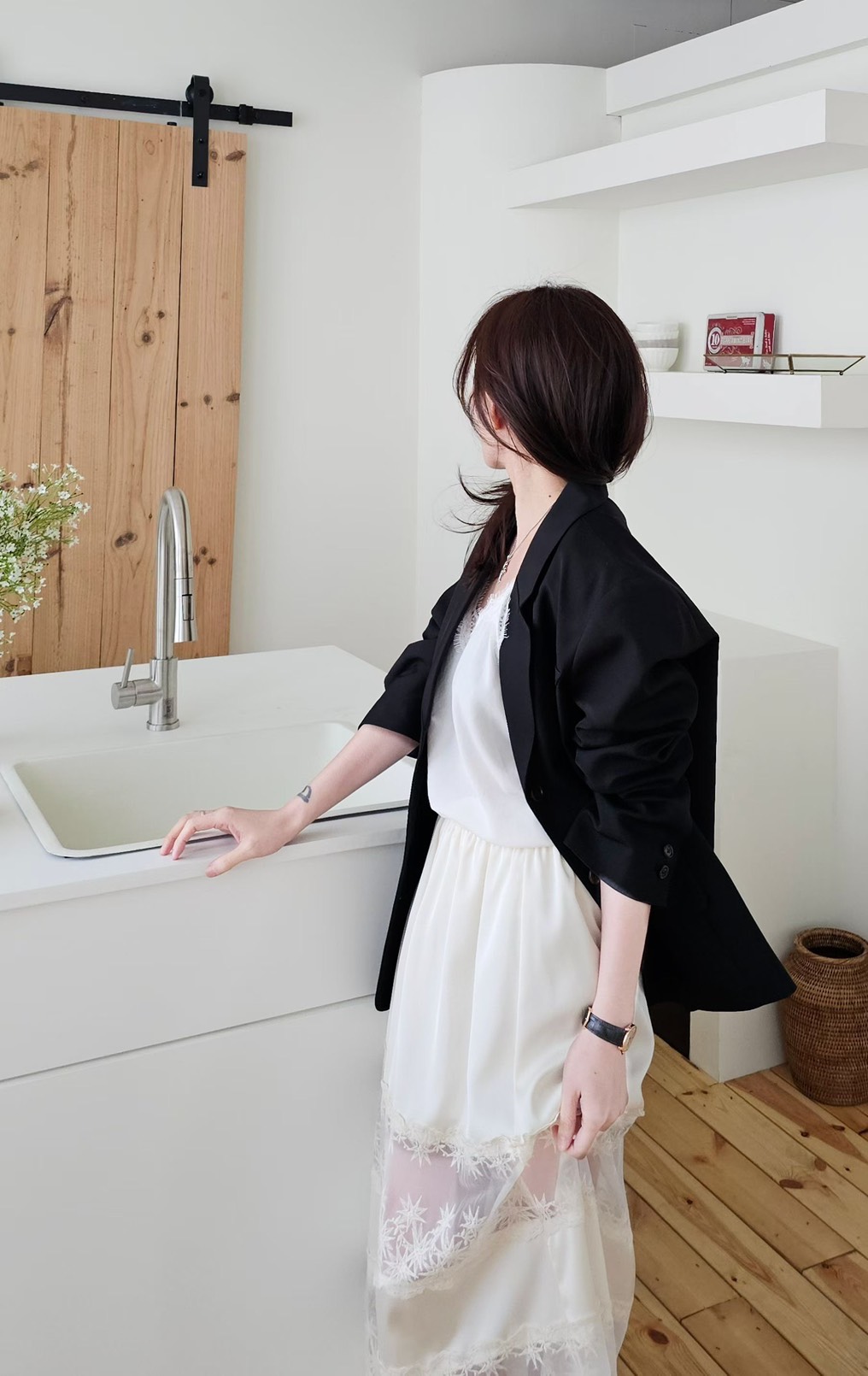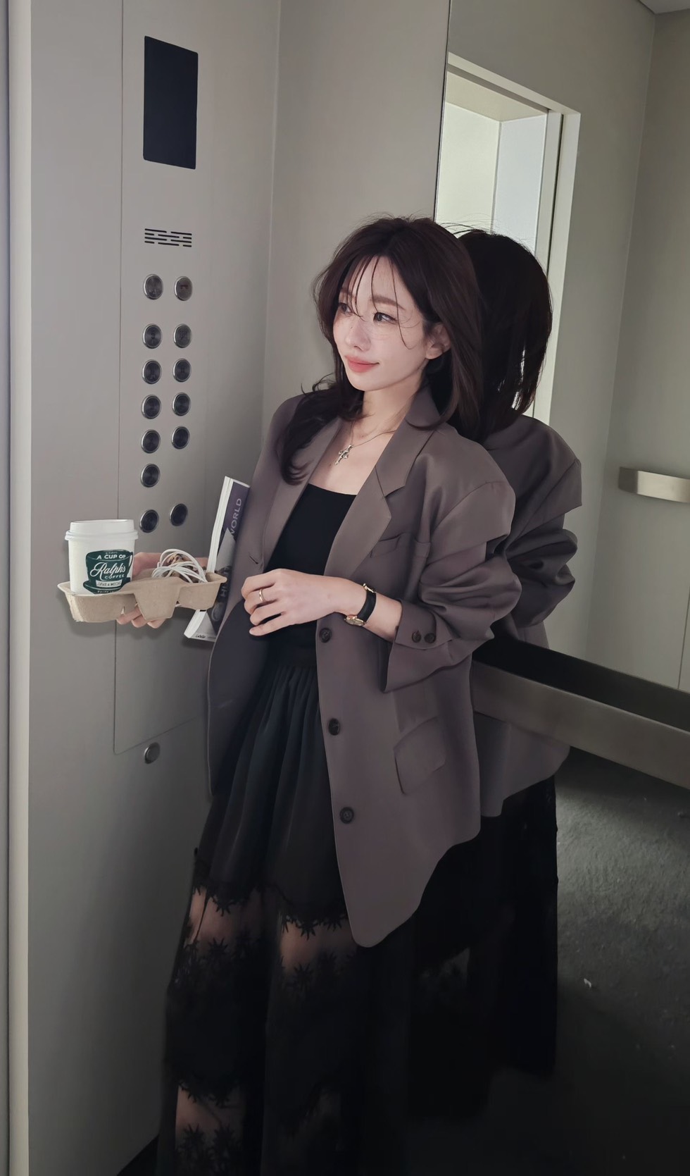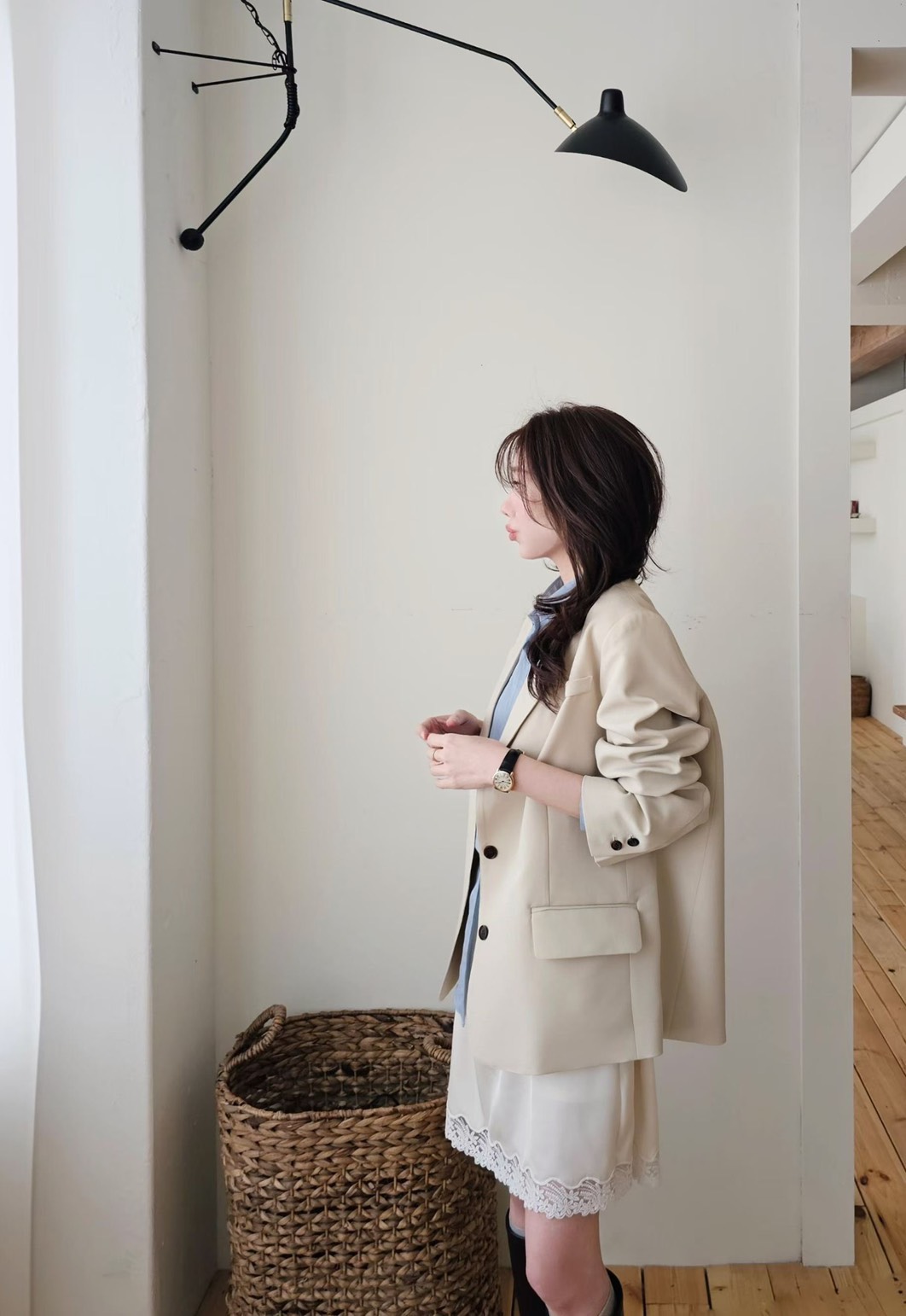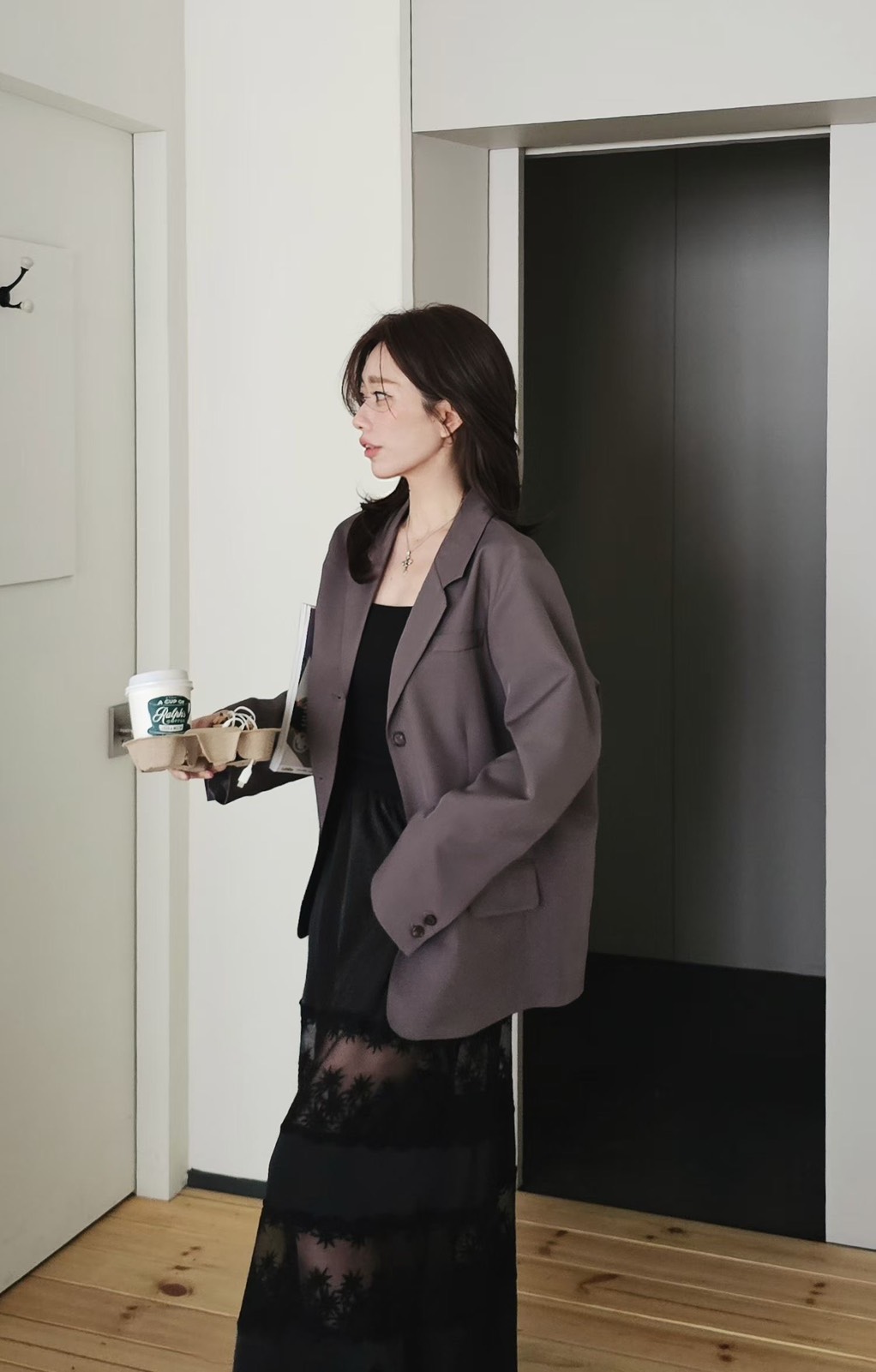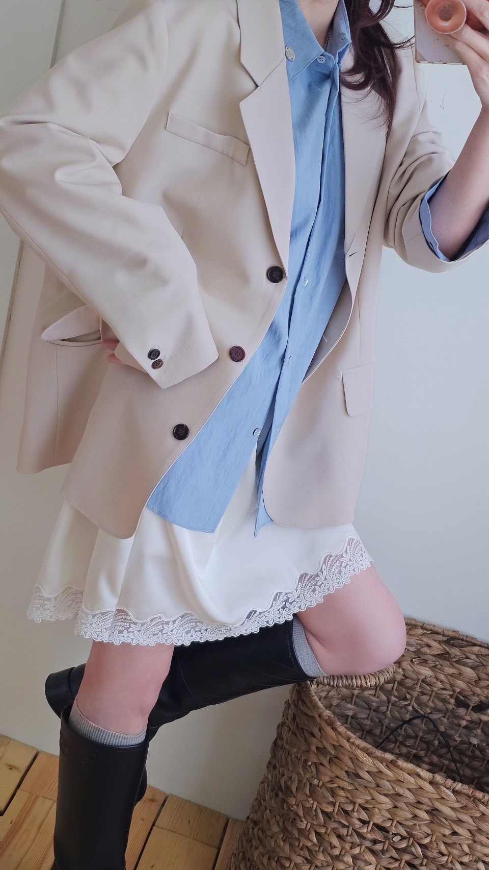杏色,高級灰,黑色 時髦精的廓形西裝外套+今年流行的蕾絲單品,直接就是時髦法式女孩😎😎
