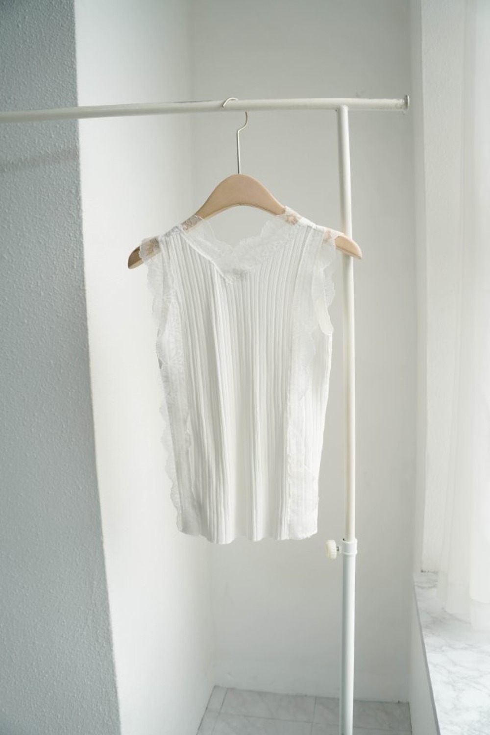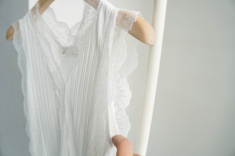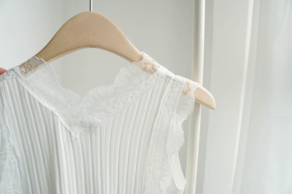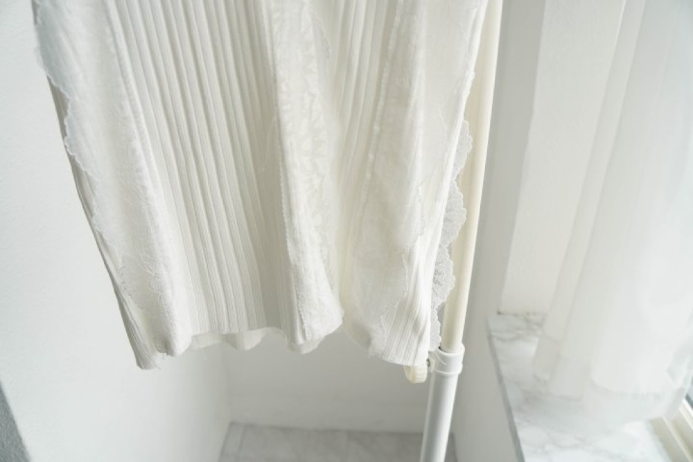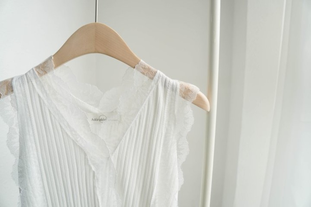 質感真的太溫柔了!細緻的壓褶搭配領口與袖口的蕾絲滾邊,