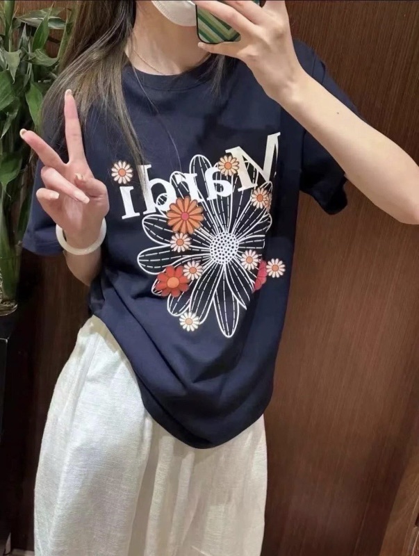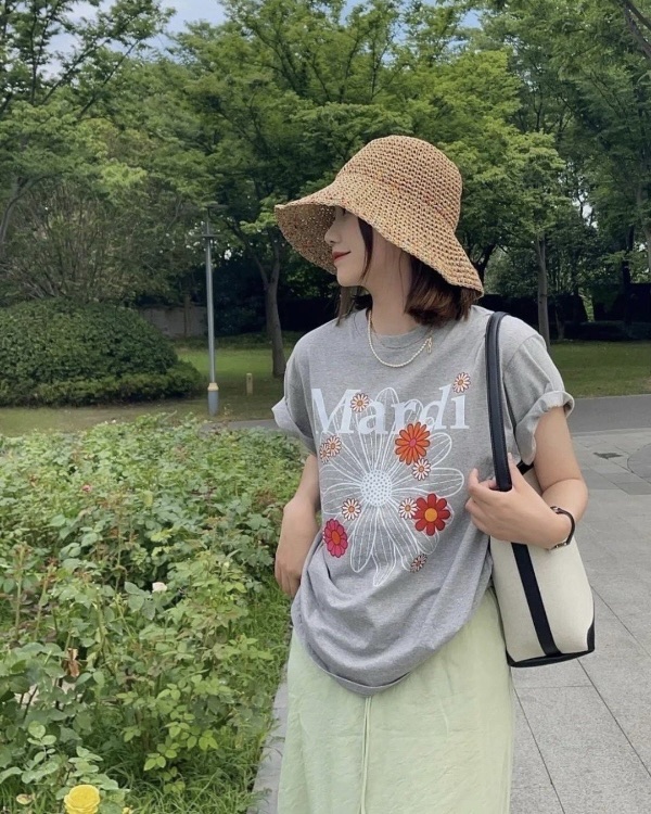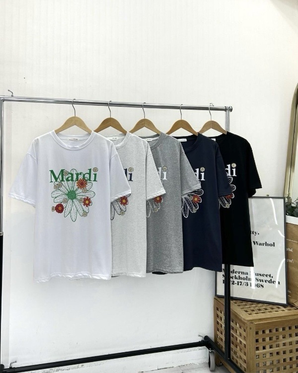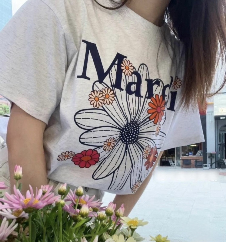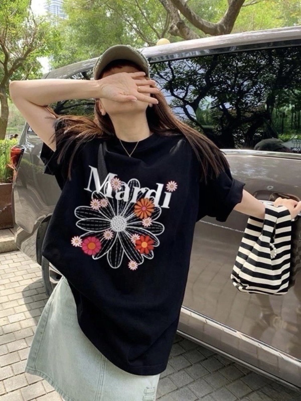 舒適自在的版型 搭配清新的大雛菊印花🌼 周圍還有點綴一些彩色小雛菊 讓整體清新又帶點俏皮感 無論牛仔褲 短裙 休閒褲都能輕鬆駕馭