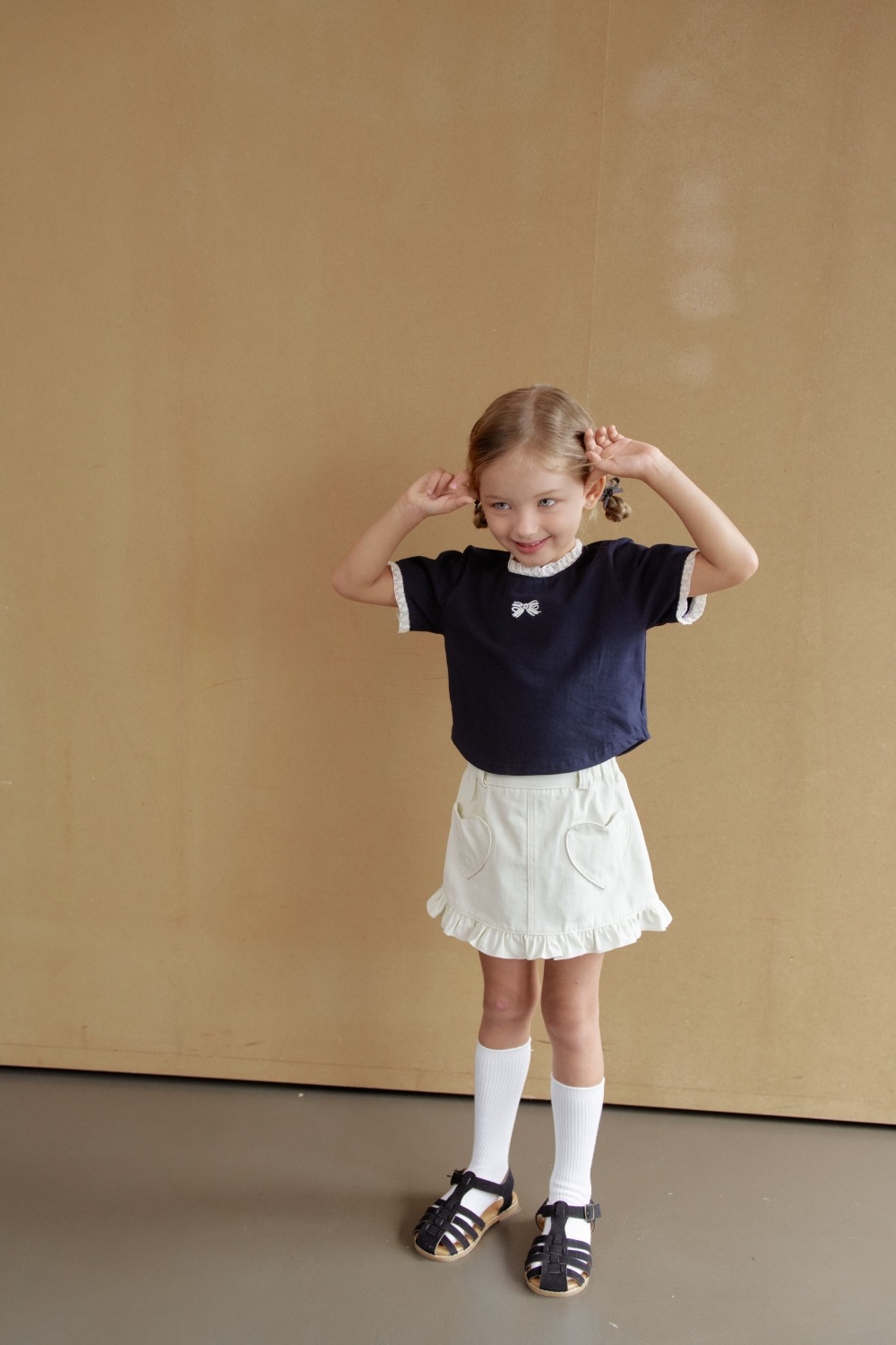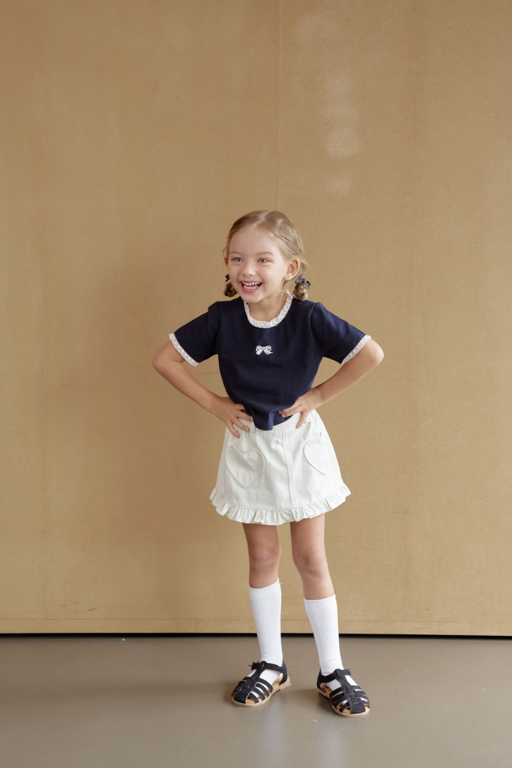 正面是大大的立體愛心口袋,搭配細緻的裙擺荷葉滾邊,層次感豐富又立體。