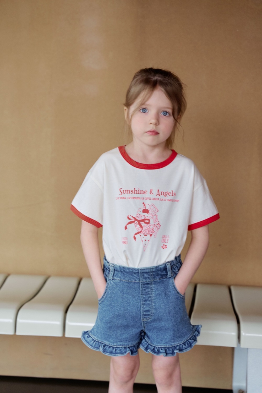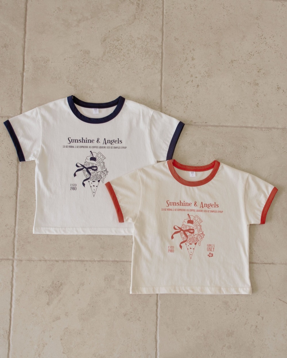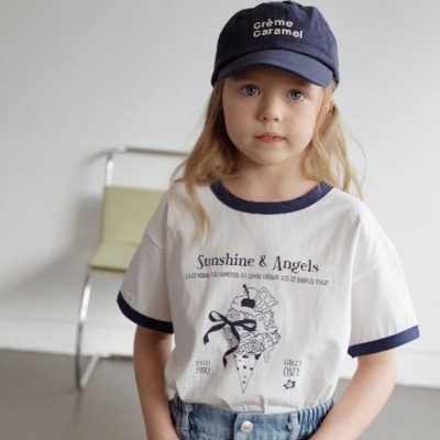 胸前精緻的冰淇淋插畫搭配 "Sunshine & Angels" 字樣,