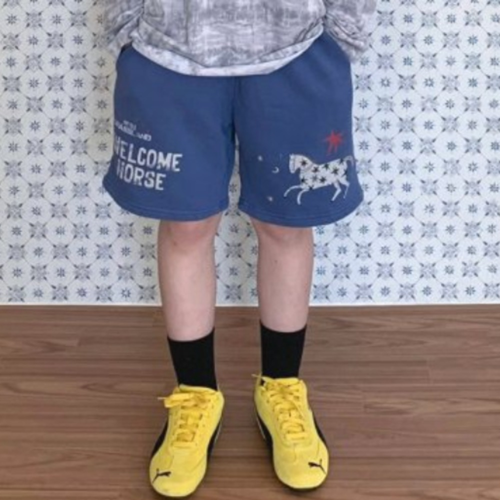 褲管兩側分別點綴了復古的 Welcome Horse 字母與極具手工感的馬兒印花,