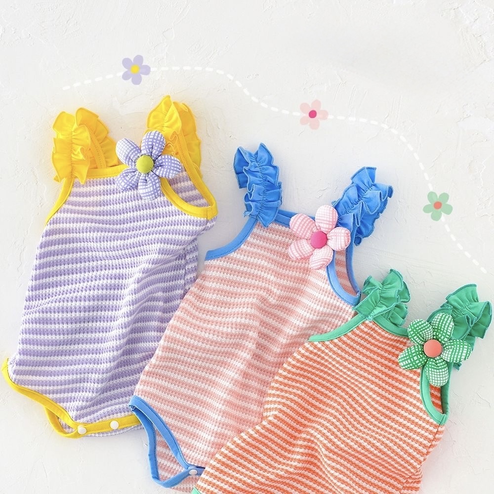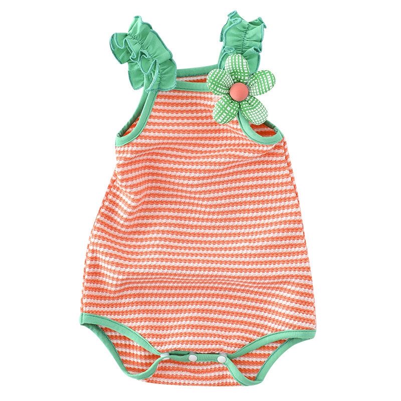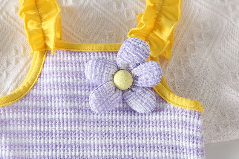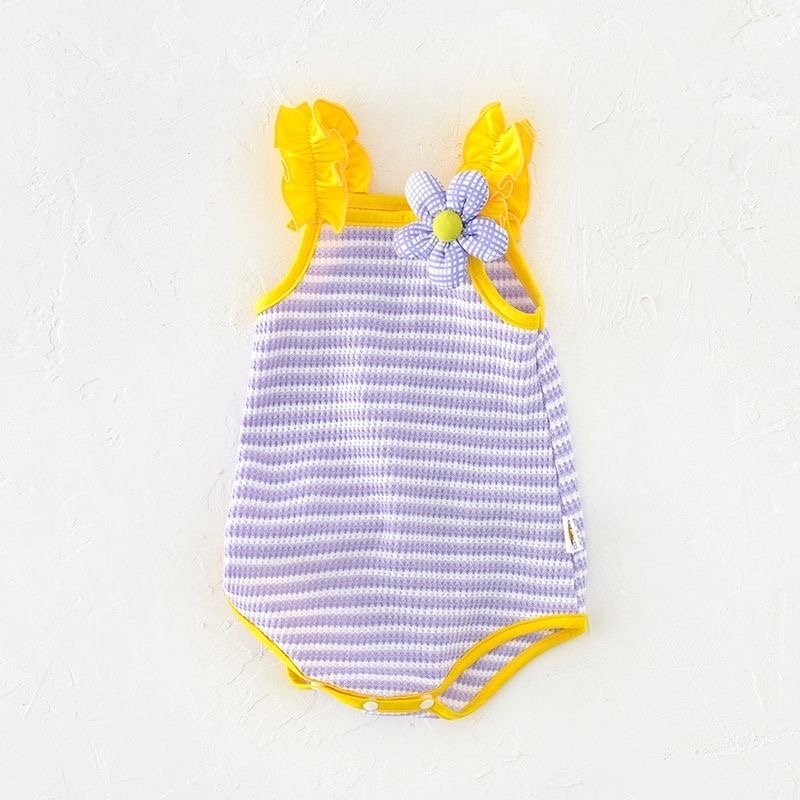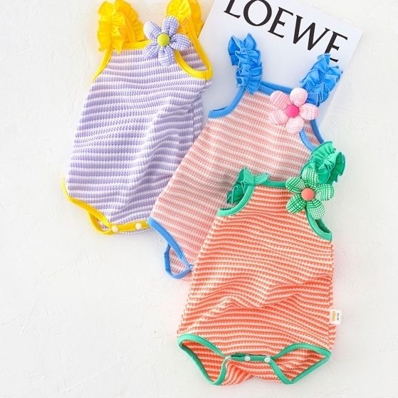 • 立體小花設計: 胸前點綴手工感立體針織小花,為簡約的條紋增添活潑亮點。