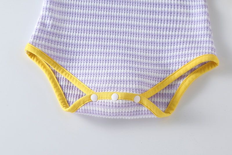 • 糖果感繽紛條紋: 採用高飽和度的紫、粉、橘三色系,讓寶寶穿上瞬間充滿元氣。