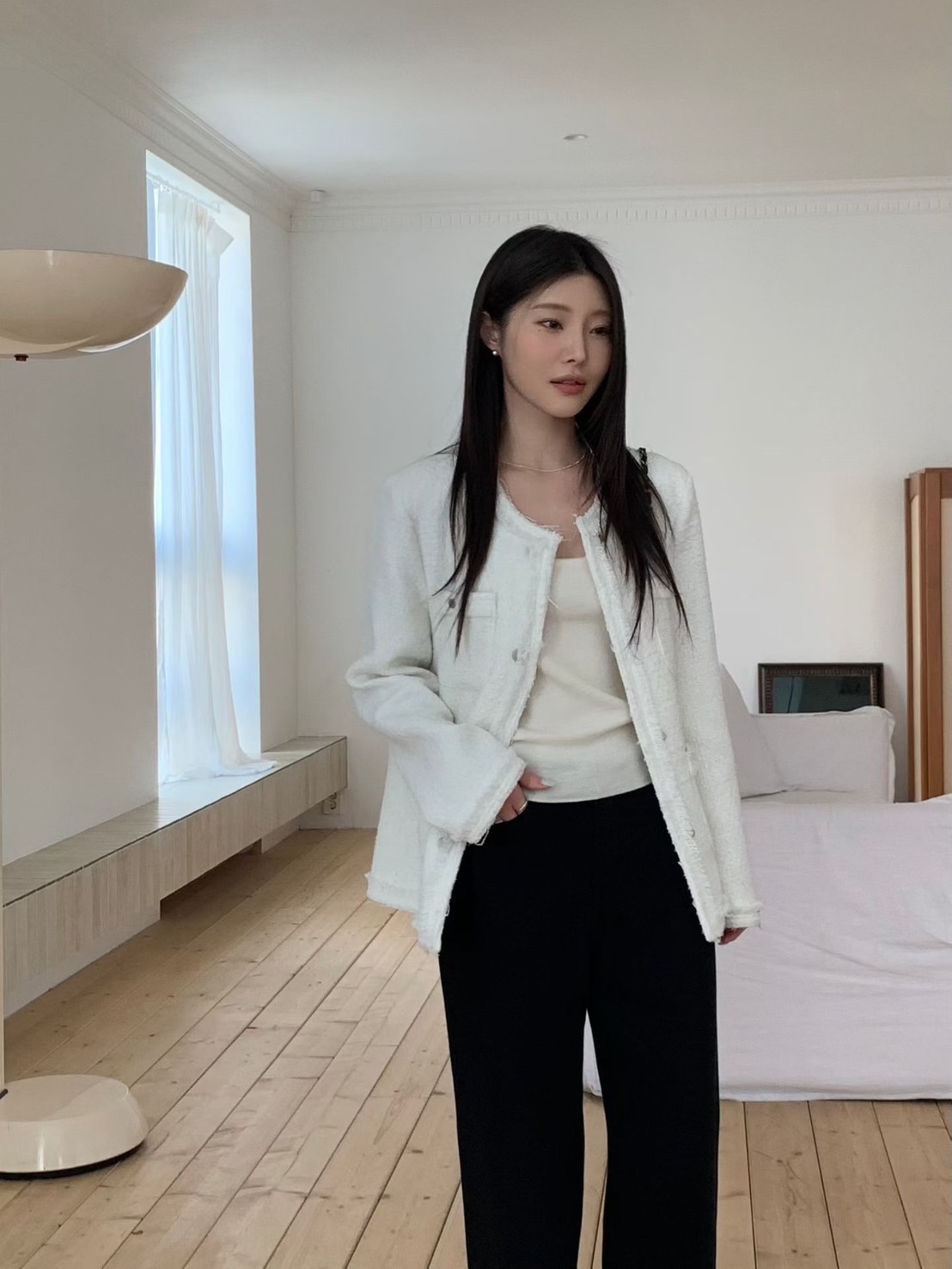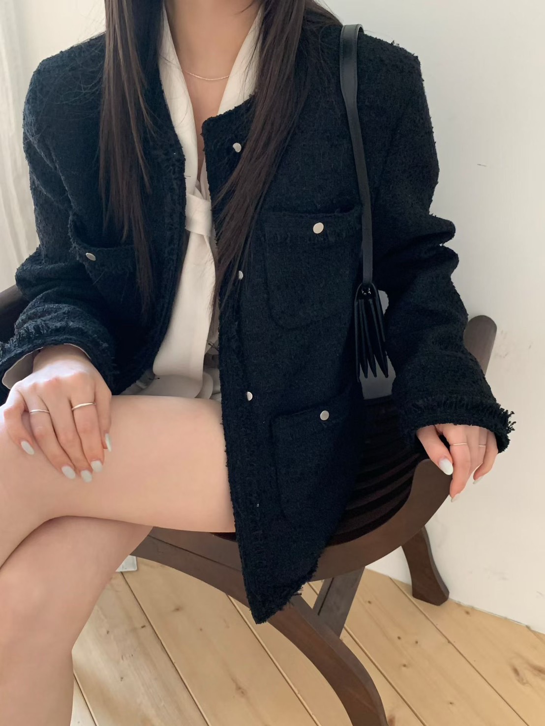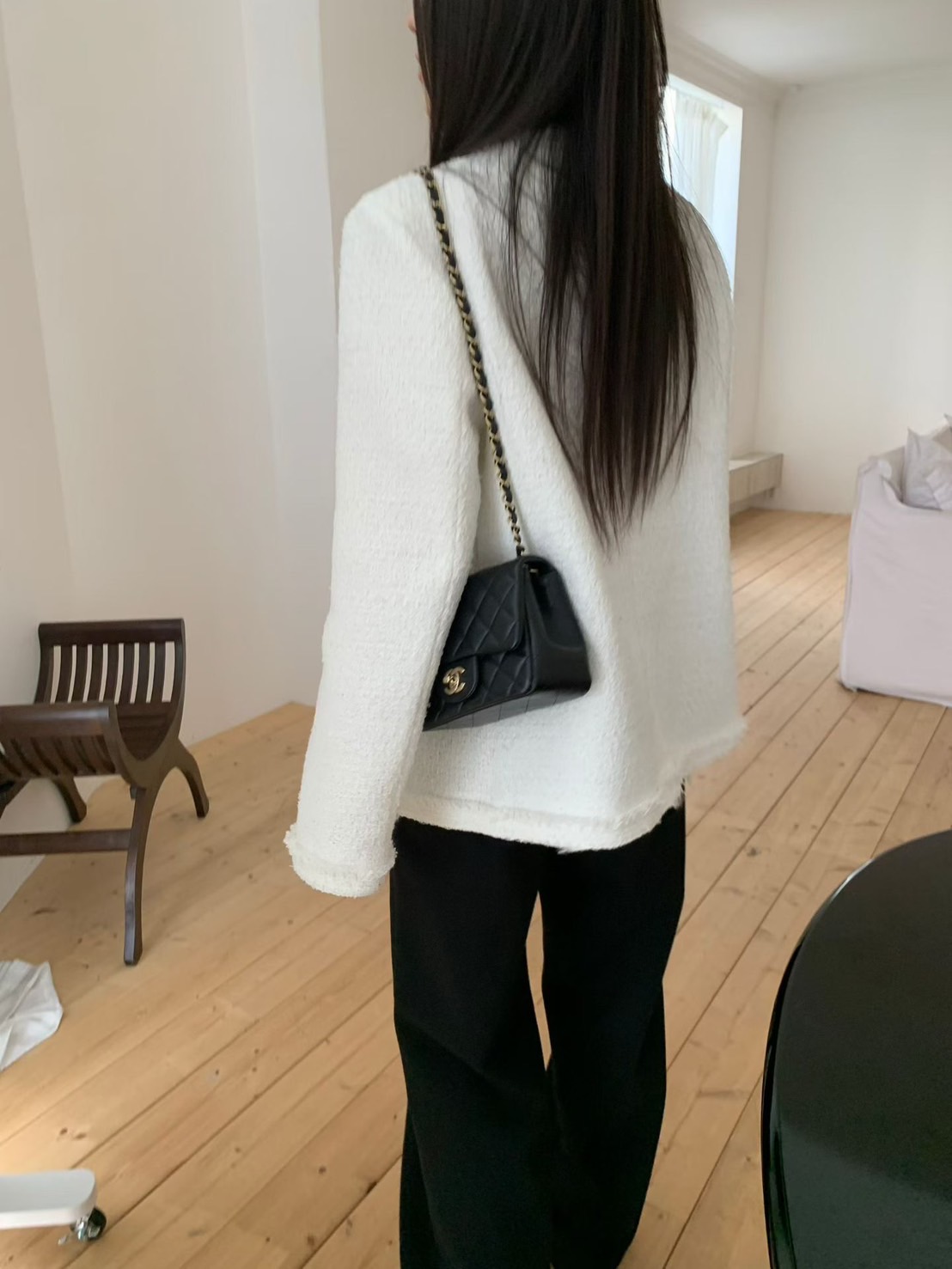 • 經典小香風設計: 簡約俐落的圓領版型,完美展現法式優雅氣息,是春季正式與休閒場合的百搭首選。