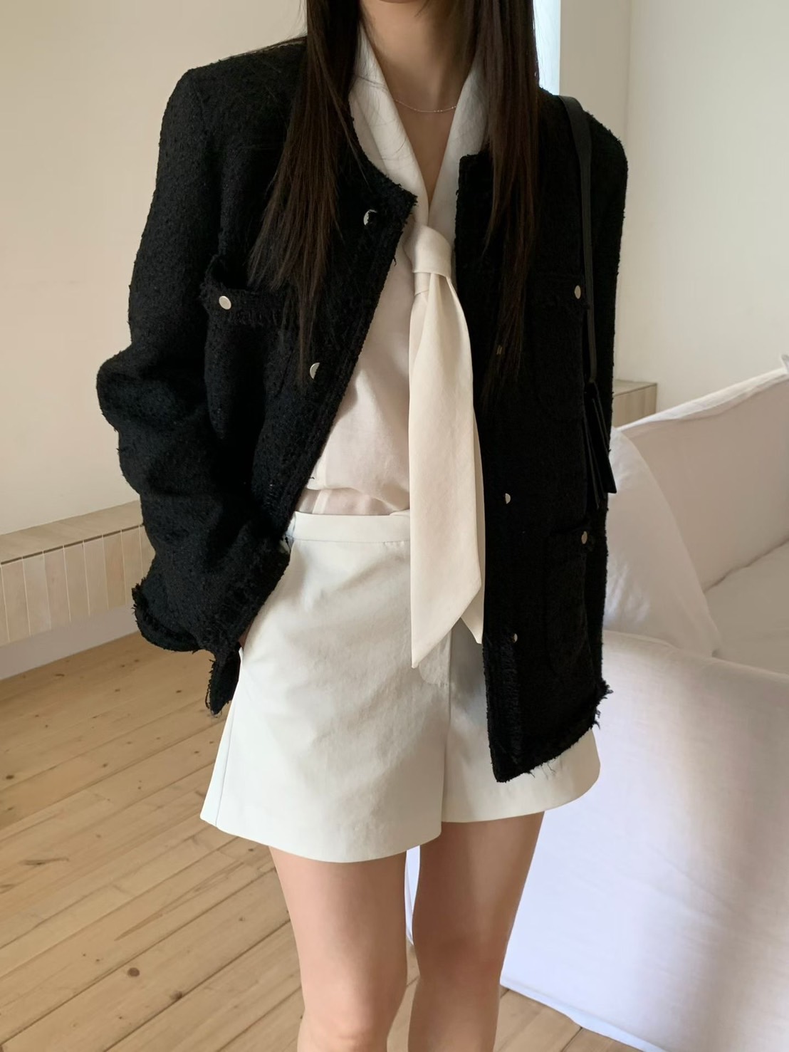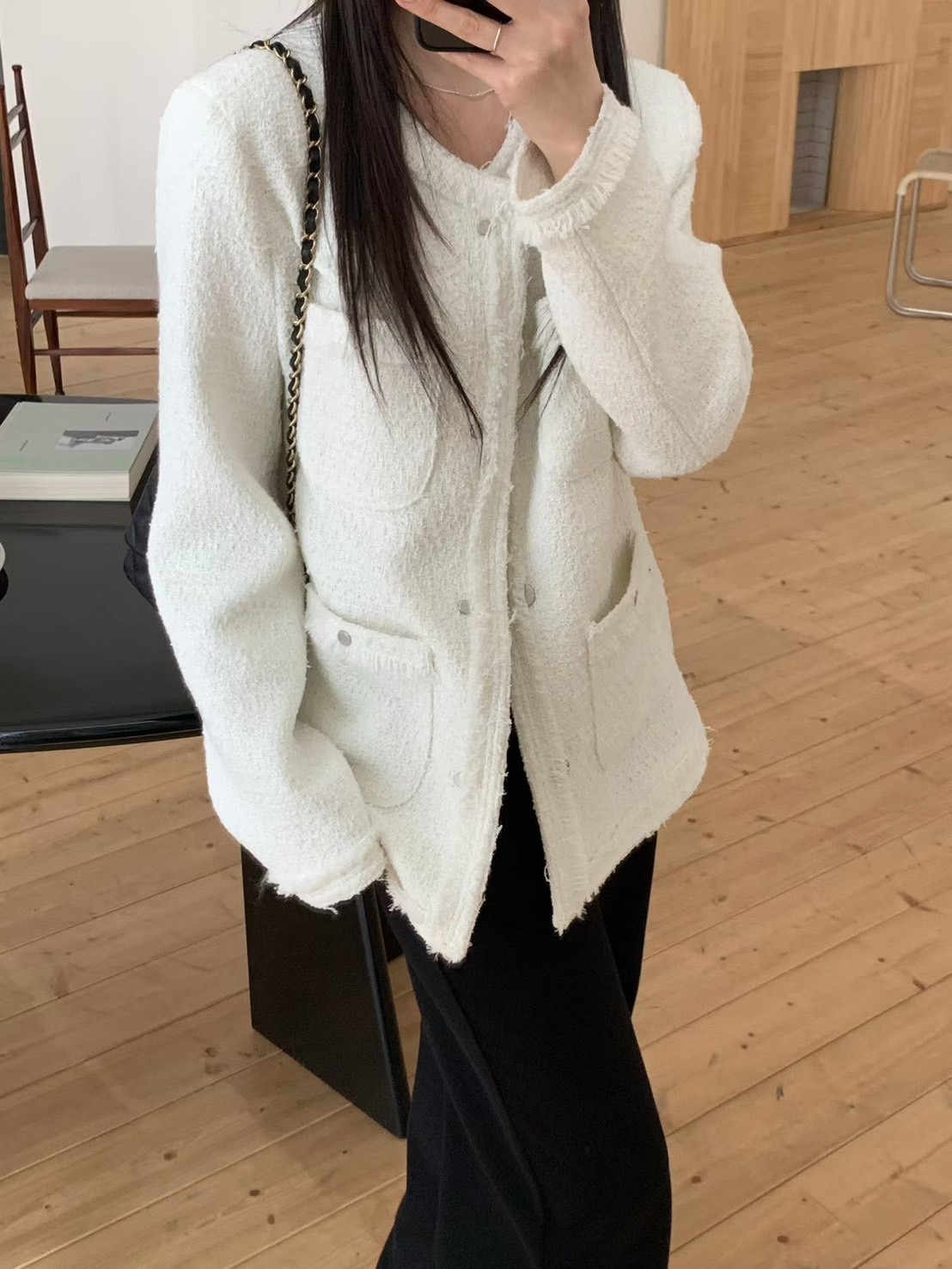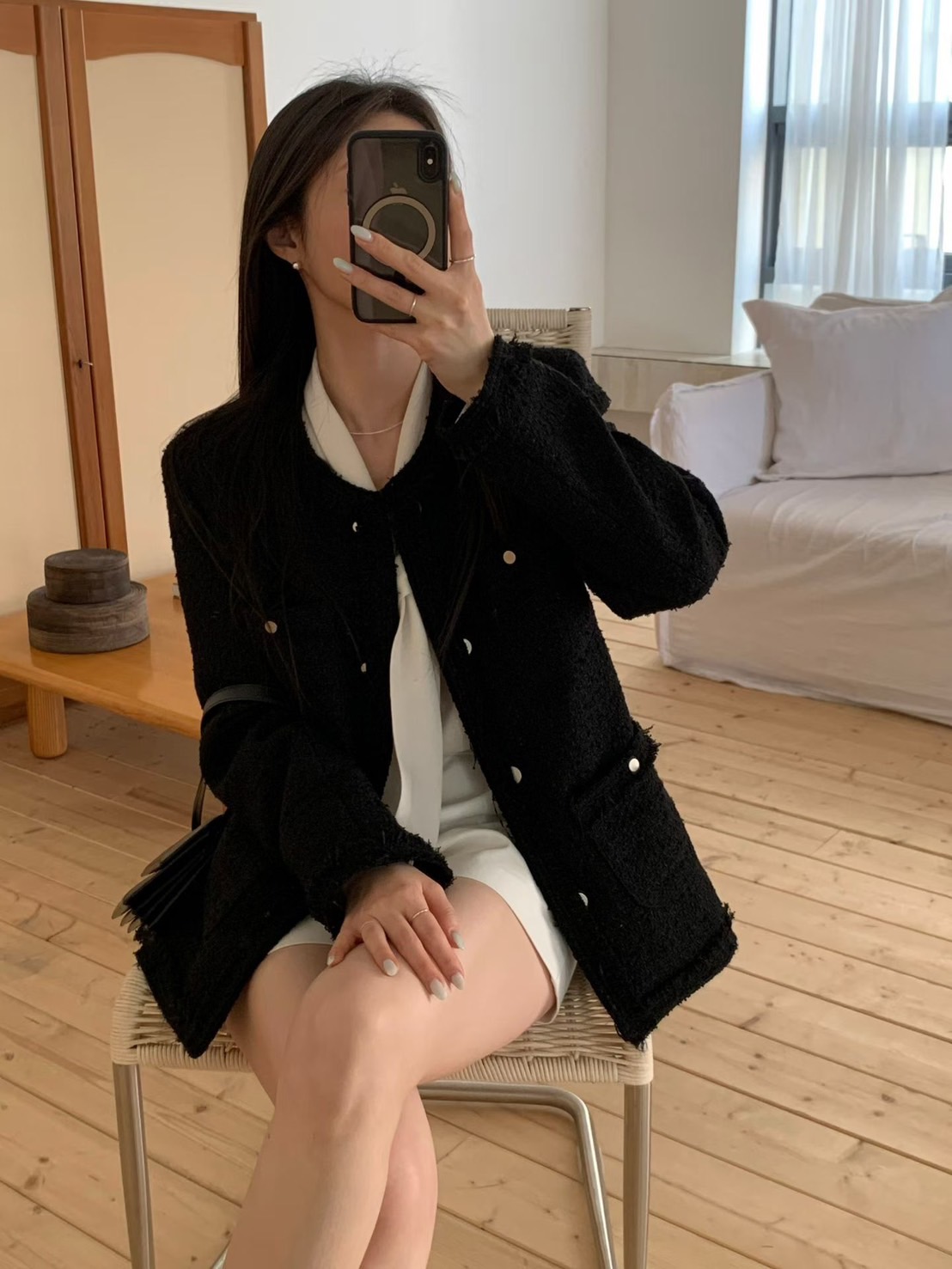 • 經典小香風設計: 簡約俐落的圓領版型,完美展現法式優雅氣息,是春季正式與休閒場合的百搭首選。