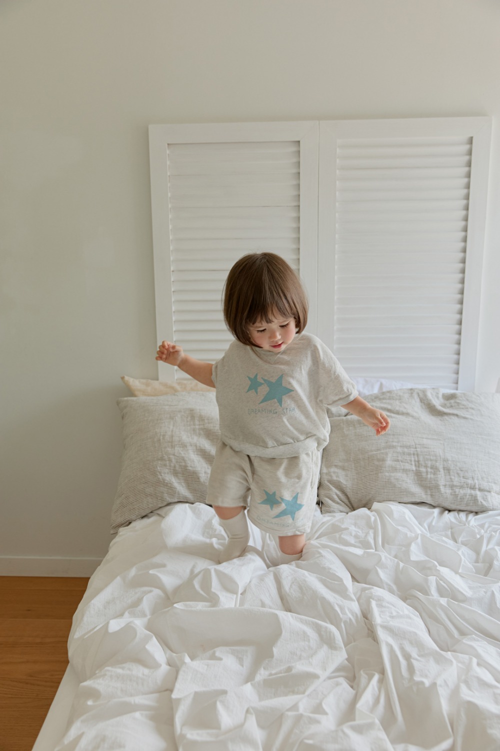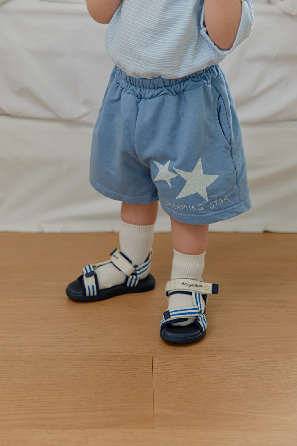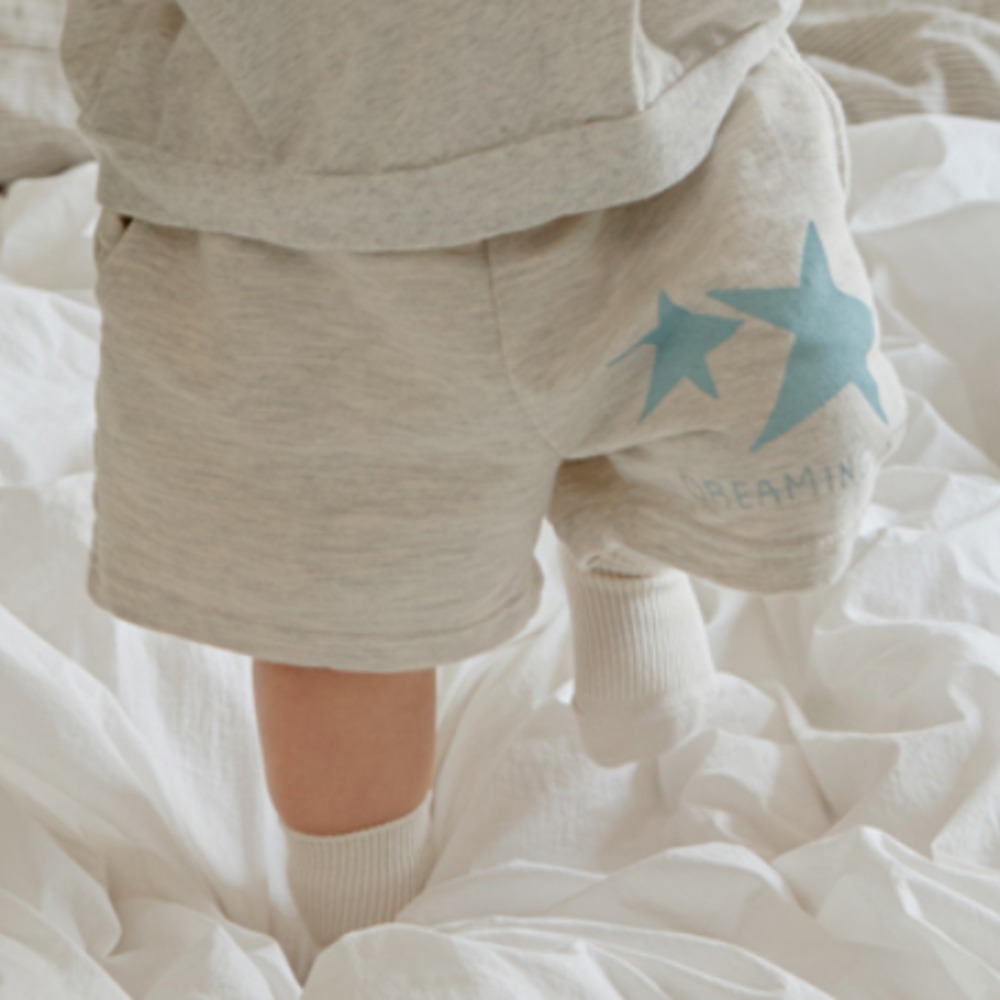 星星上衣同系列的成套短褲,高彈力的鬆緊腰帶不勒小肚肚,
