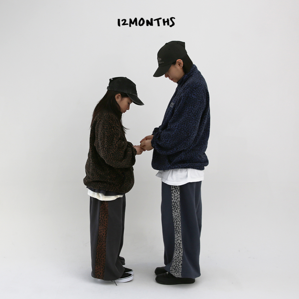 兩側豹紋側條超有辨識度,版型偏寬鬆、下擺束口設計,穿起來就是韓系小潮人的街頭氛圍。