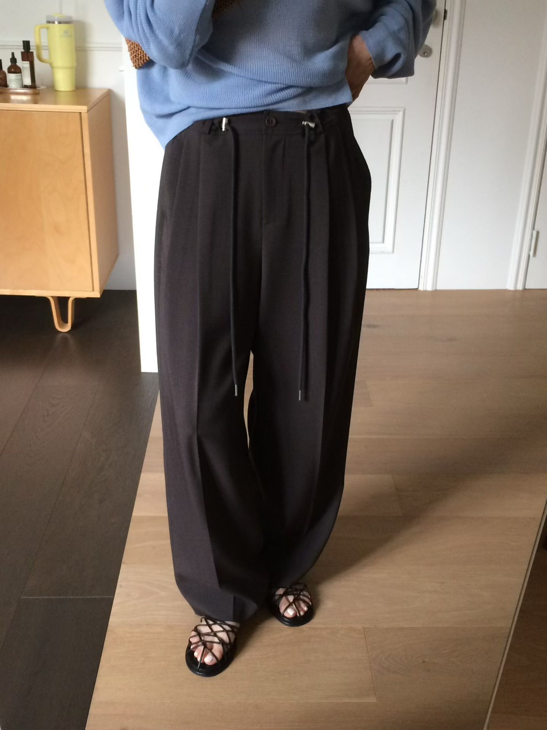 155-160cm:穿起來帶有微拖地的慵懶時髦感,建議搭配有跟鞋或厚底鞋。