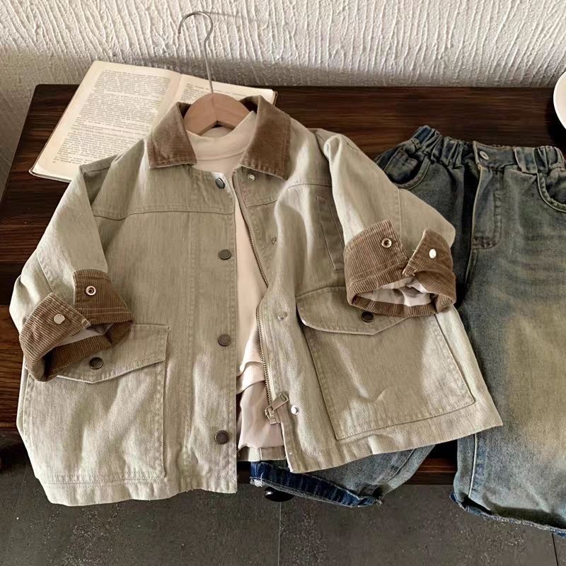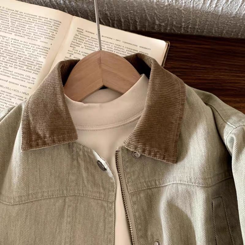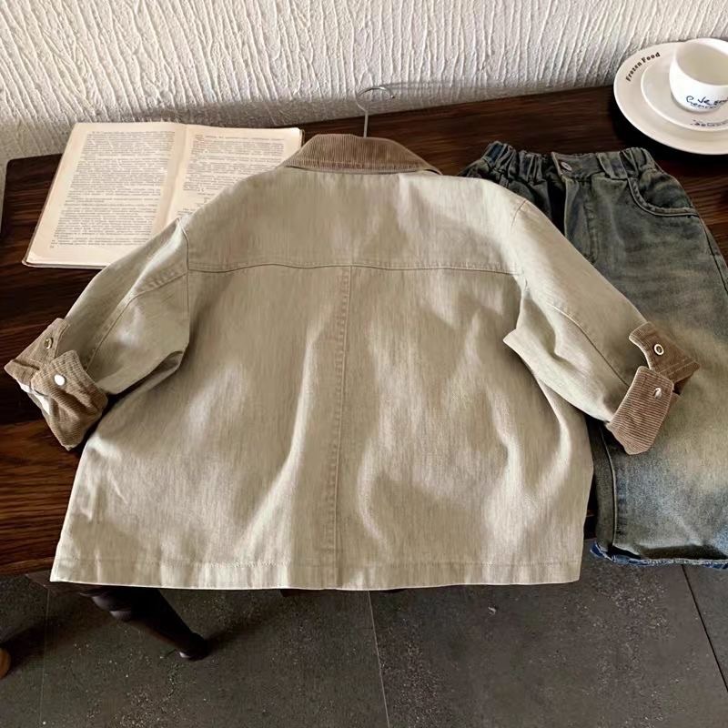 復古刷舊棉麻翻領外套,卡其色質感設計,